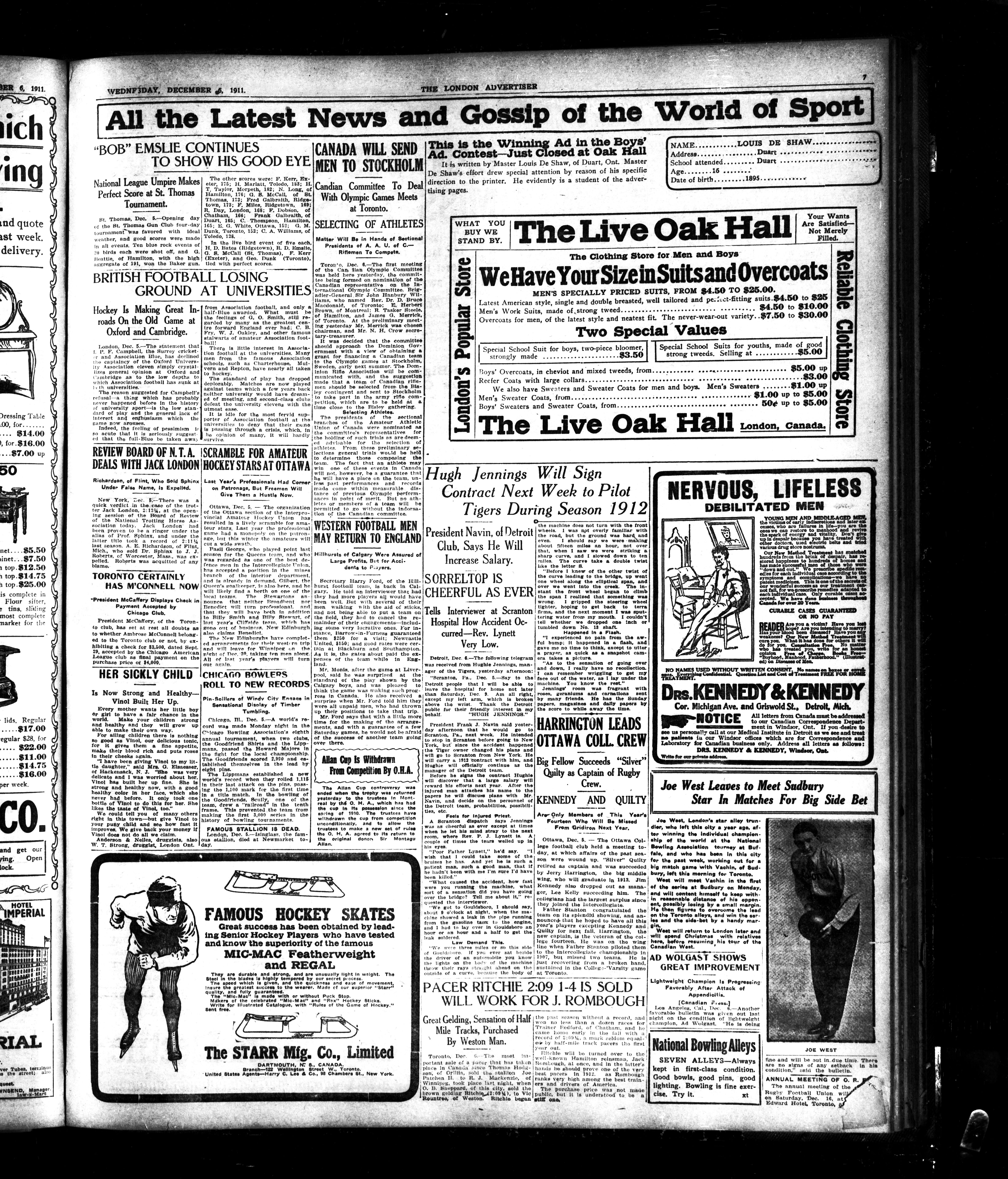 London advertiser. : London Advertiser : 47th Year, No. 20468 (December 6, 1911)