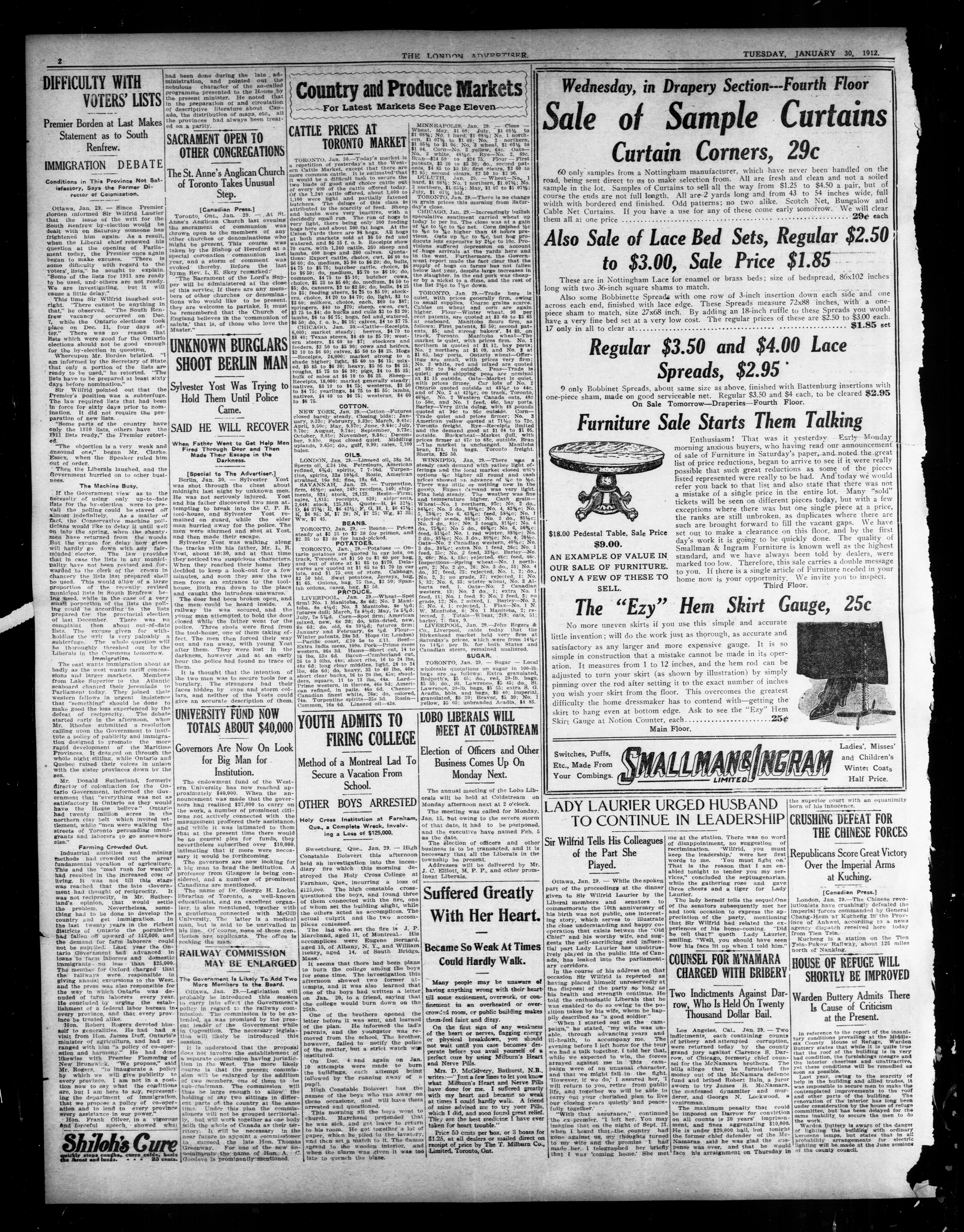 London advertiser. : London Advertiser : 49th Year, No. 20515 (January 30, 1912)