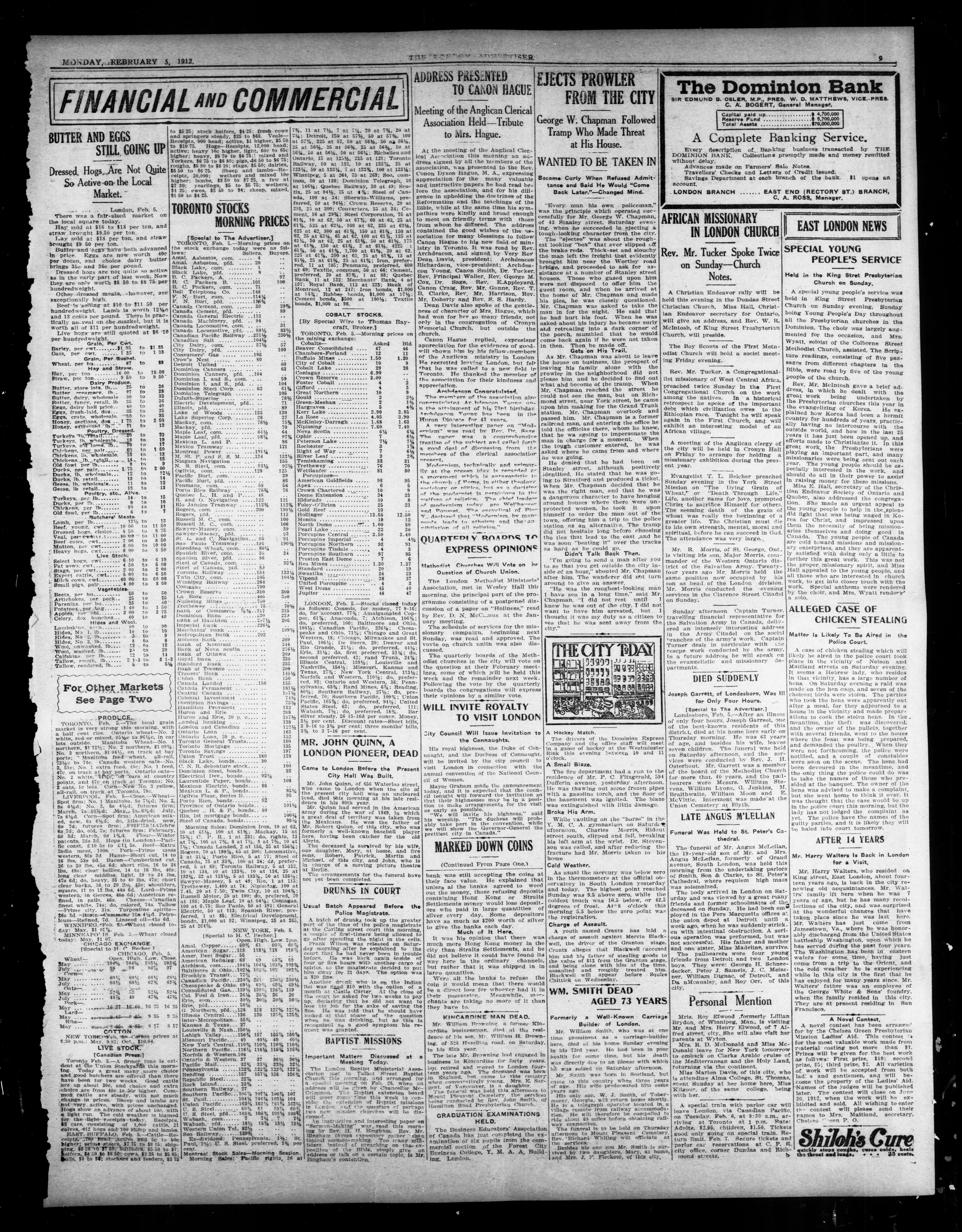 London advertiser. : London Advertiser : 49th Year, No. 20520 (February 5, 1912)