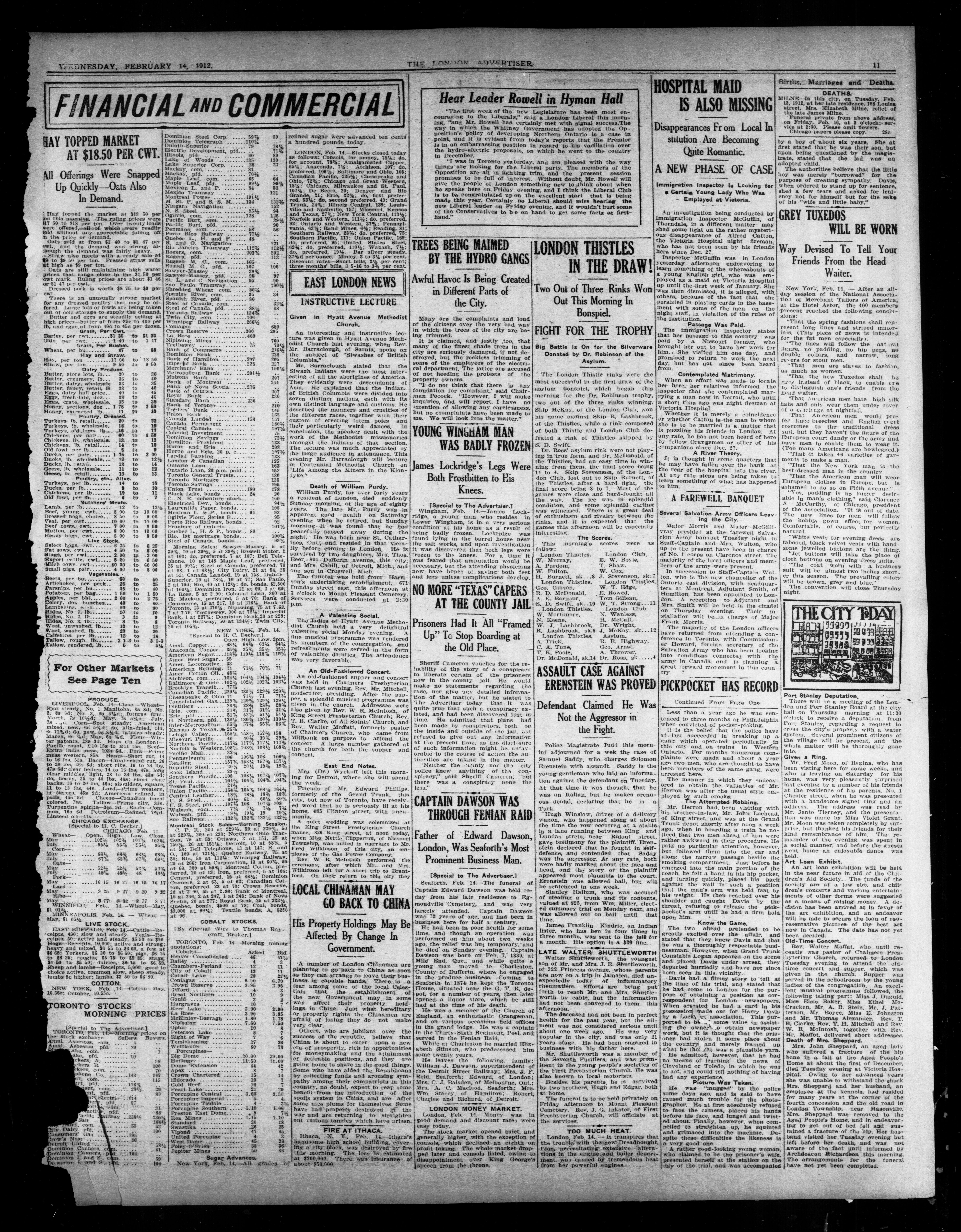 London Advertiser : 49th Year, No. 20528 (February 14, 1912)