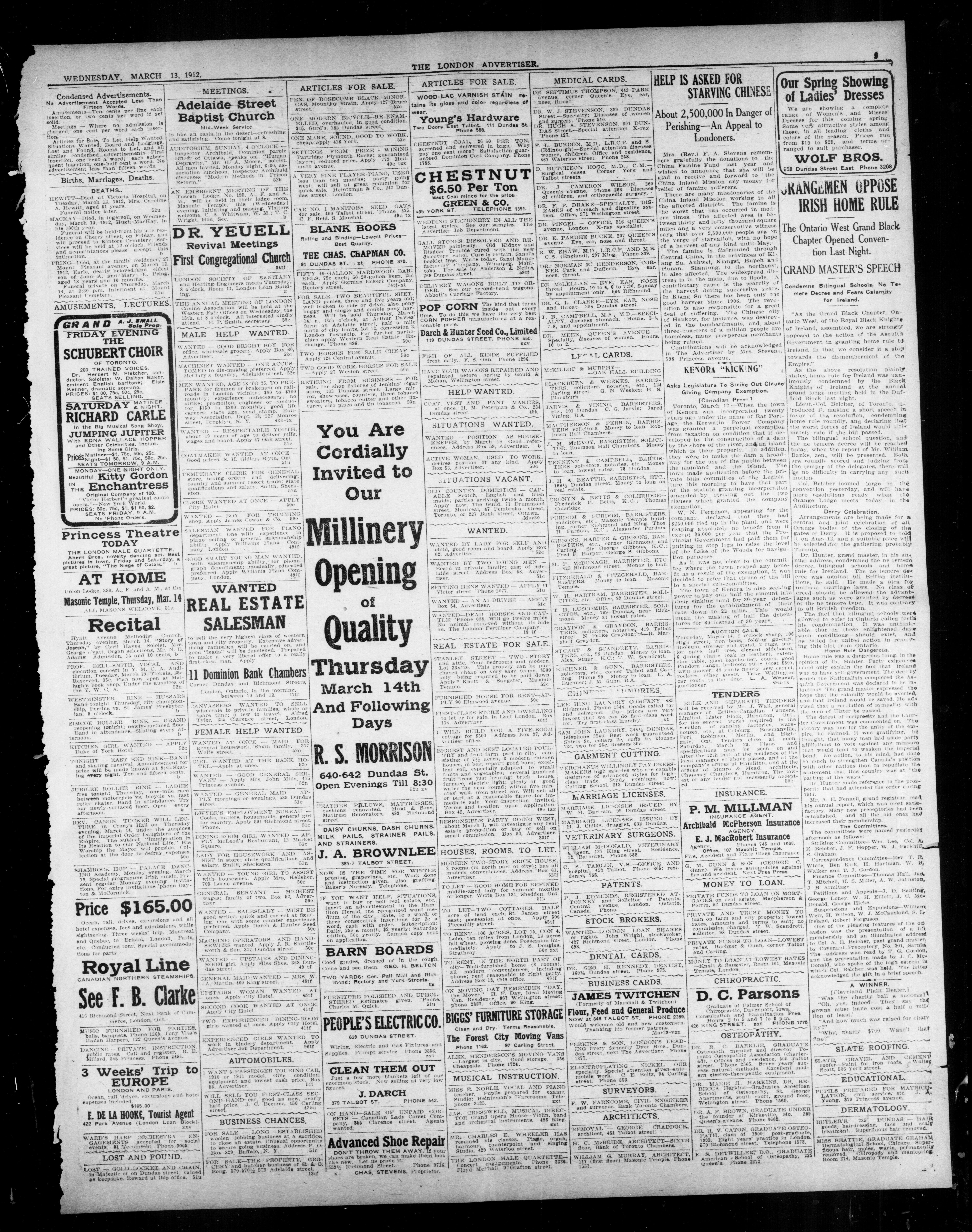 London advertiser. : London Advertiser : 49th Year, No. 20552 (March 13, 1912)