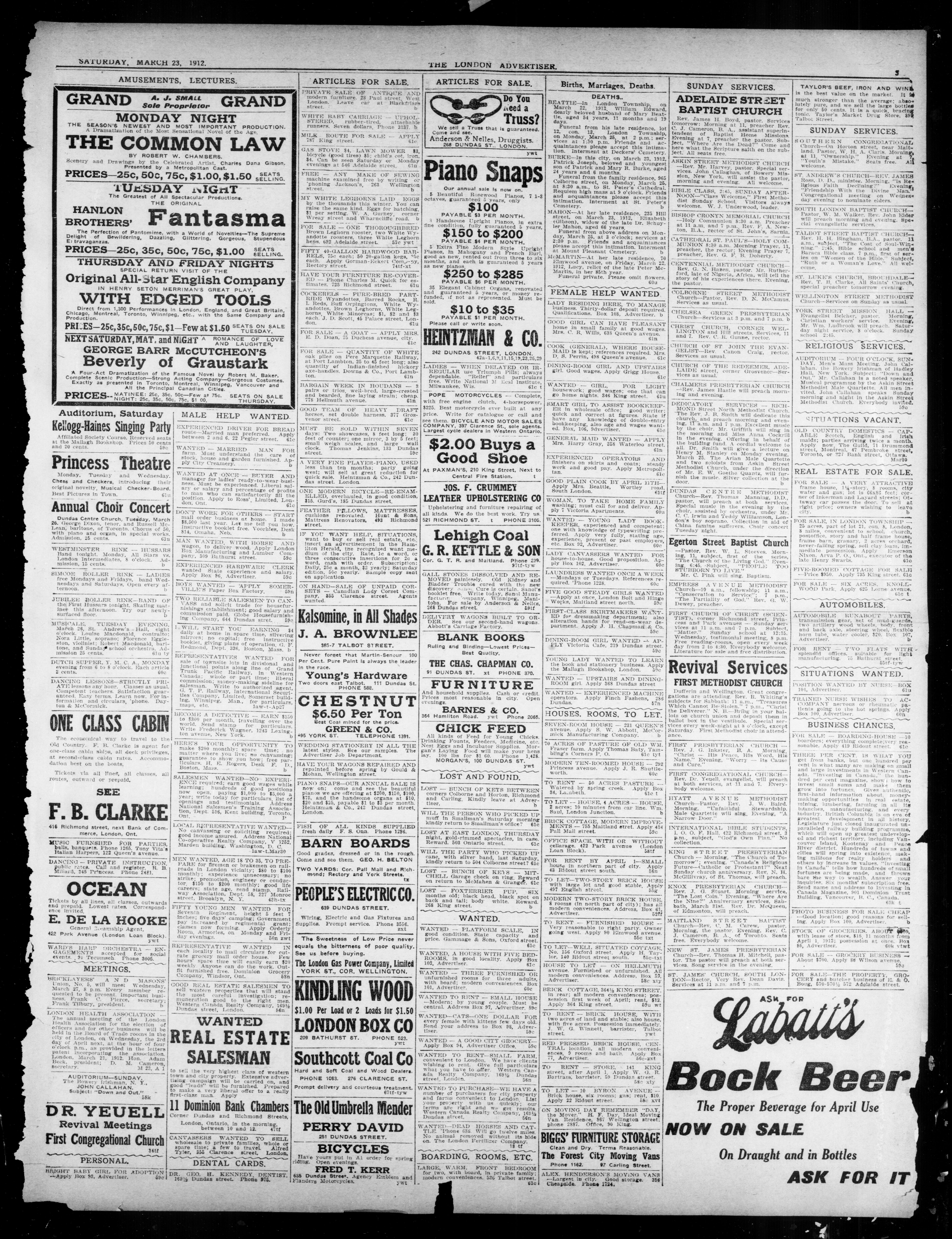 - London Advertiser : 49th Year, No. 20561 (March 23, 1912)