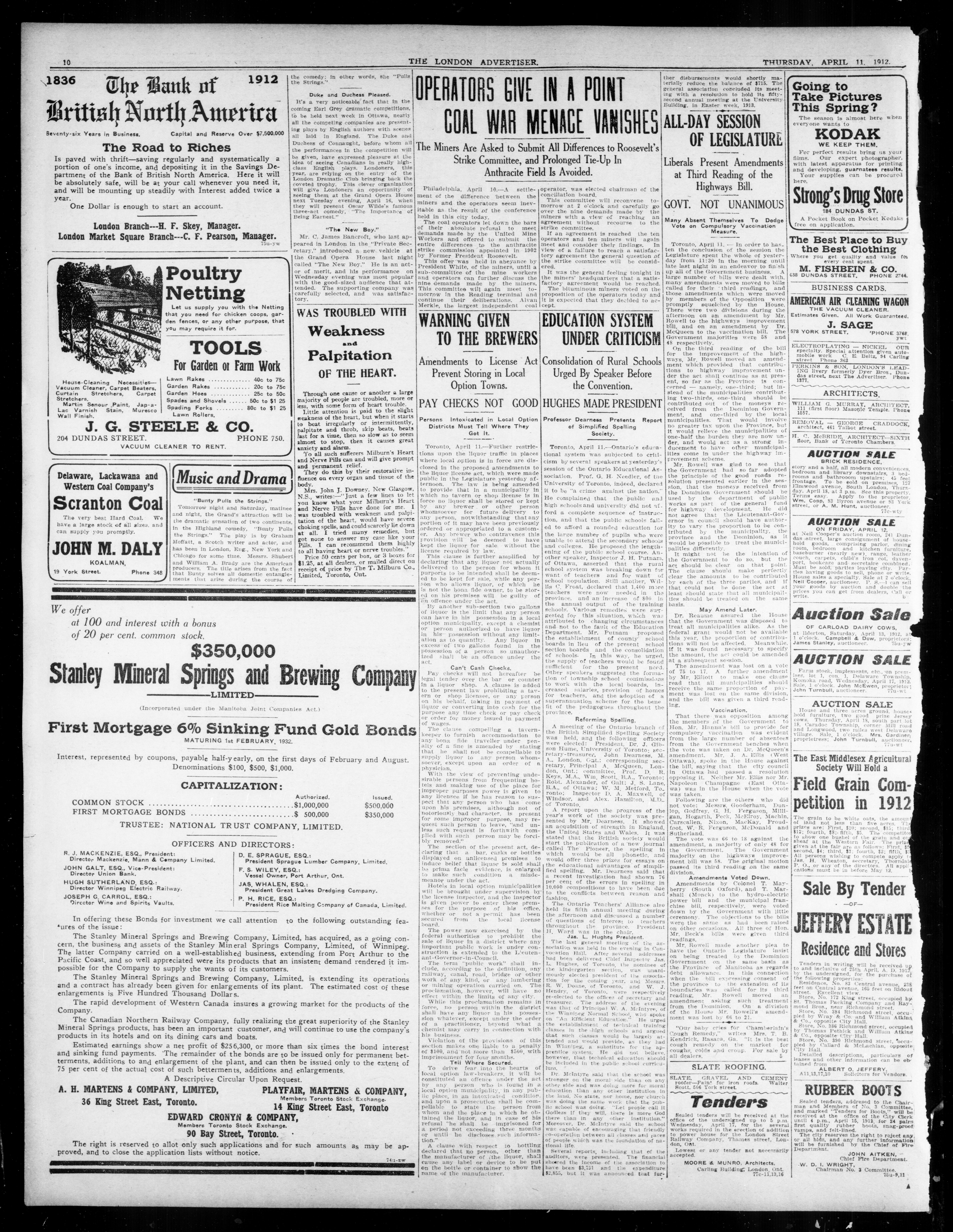 - London Advertiser : 49th Year, No. 20577 (April 11, 1912)