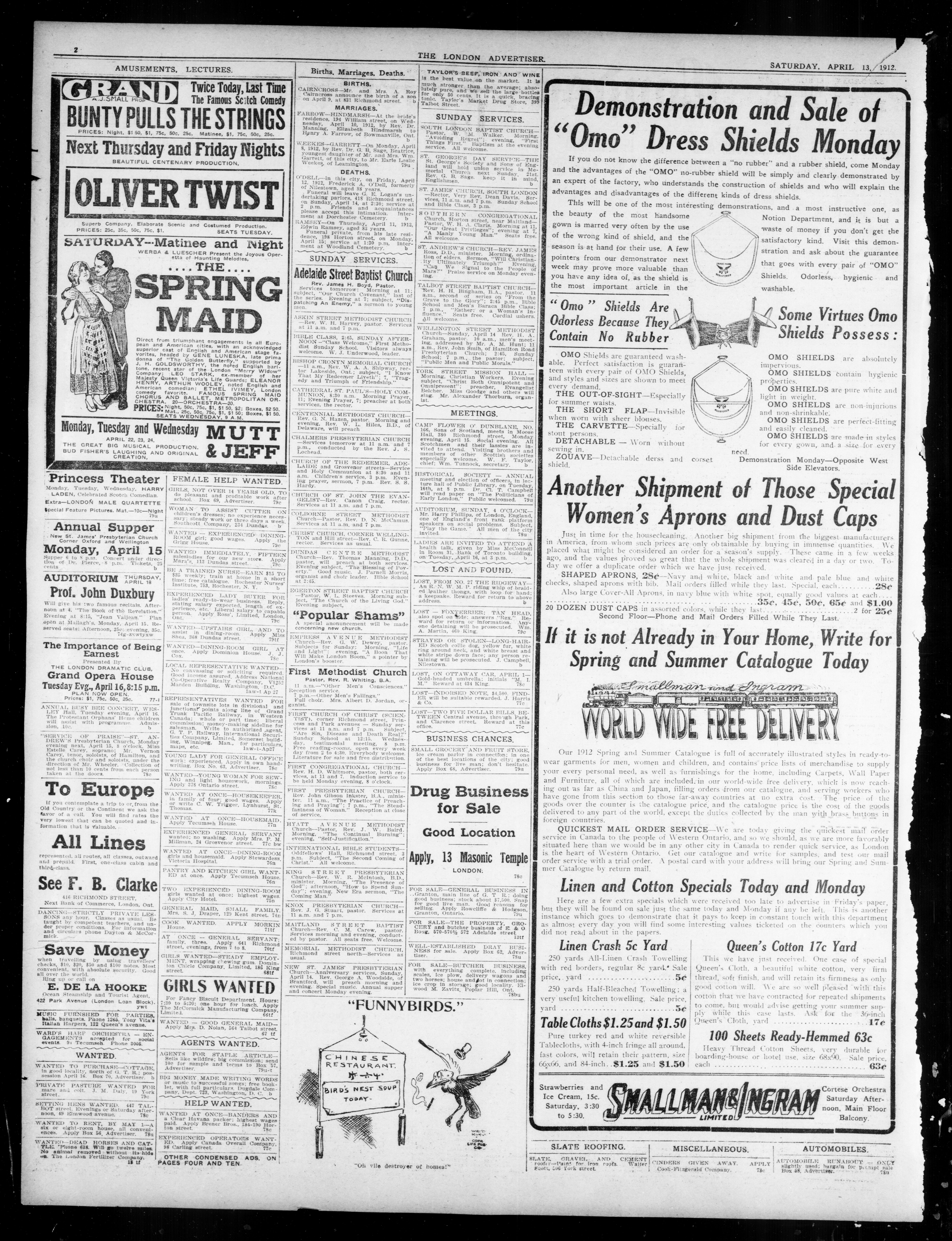 London Advertiser : 49th Year, No. 20579 (April 13, 1912)