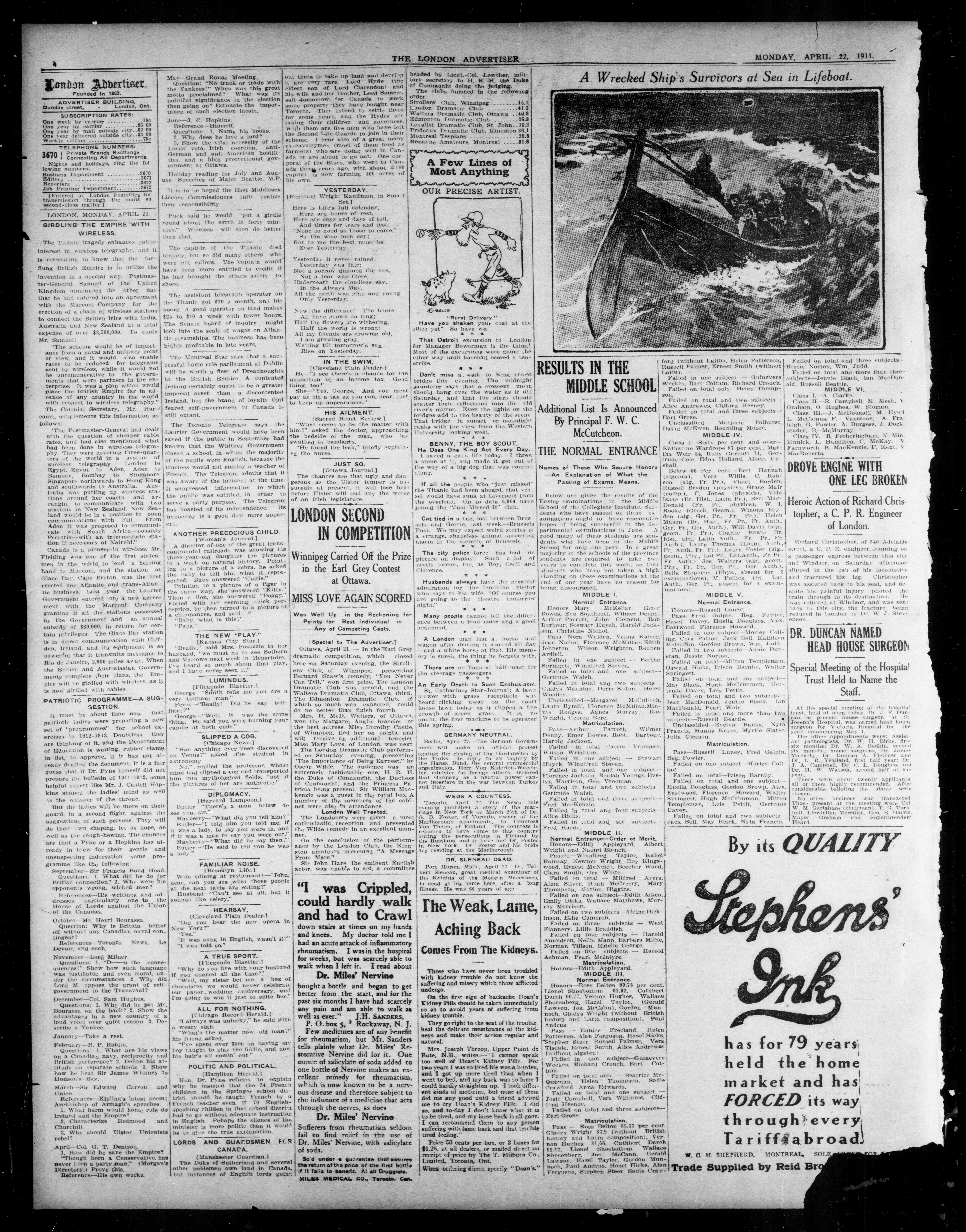 London Advertiser : 49th Year, No. 20586 (April 22, 1912)