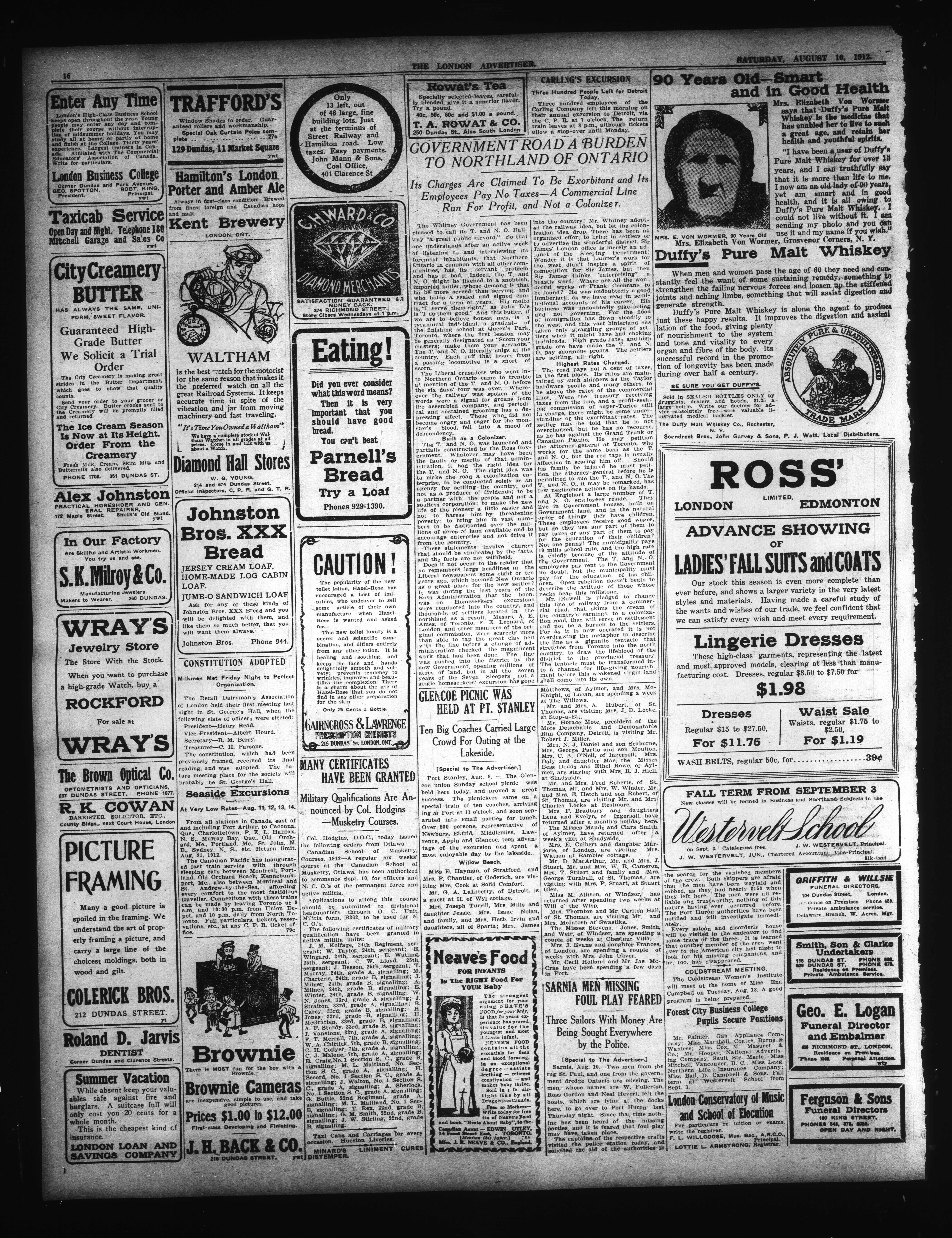 London advertiser. : London Advertiser : 49th Year, No. 20681 (August 10, 1912)