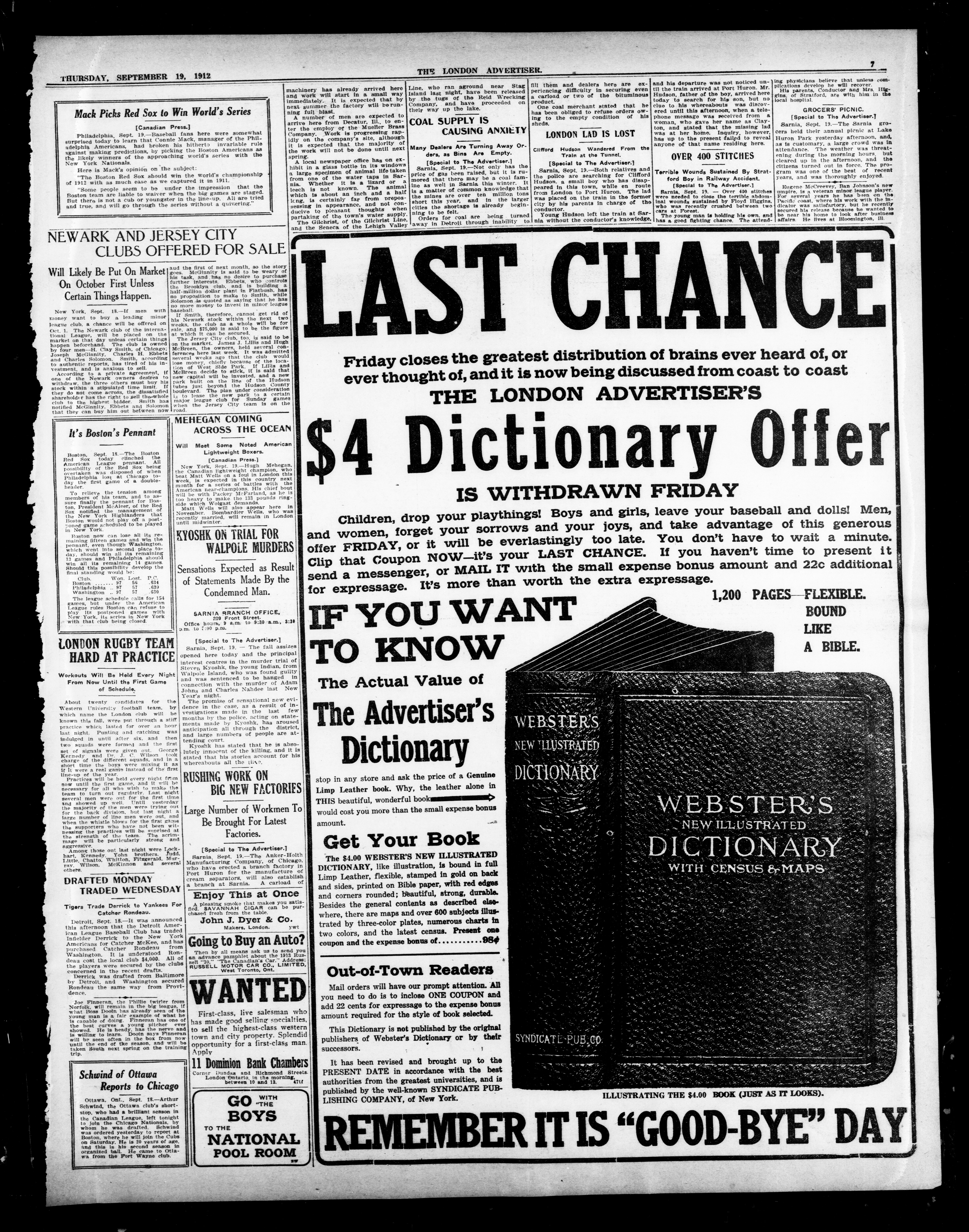- London Advertiser : 49th Year, No. 20715 (September 19, 1912)