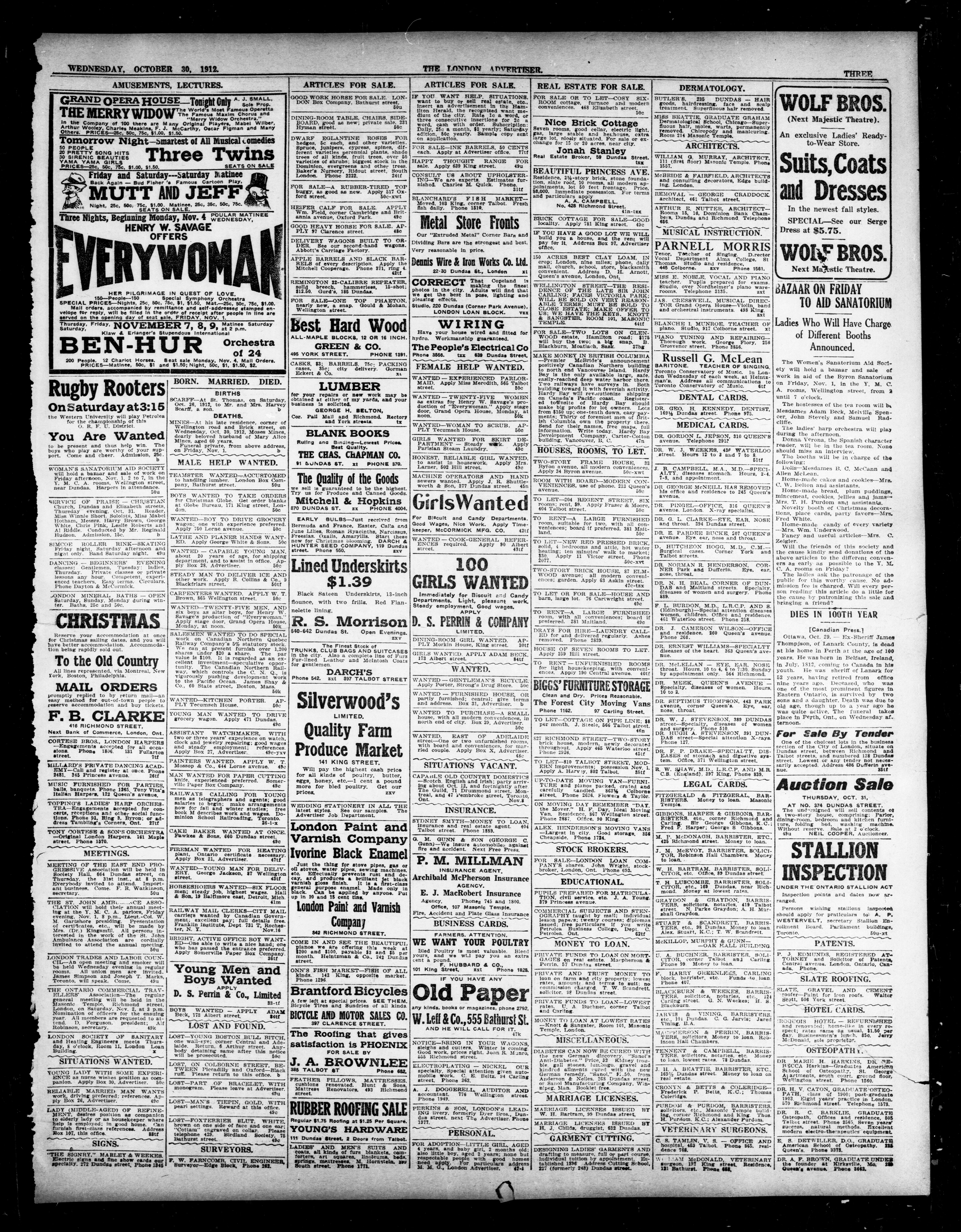 London Advertiser : 49th Year, No. 20750 (October 30, 1912)