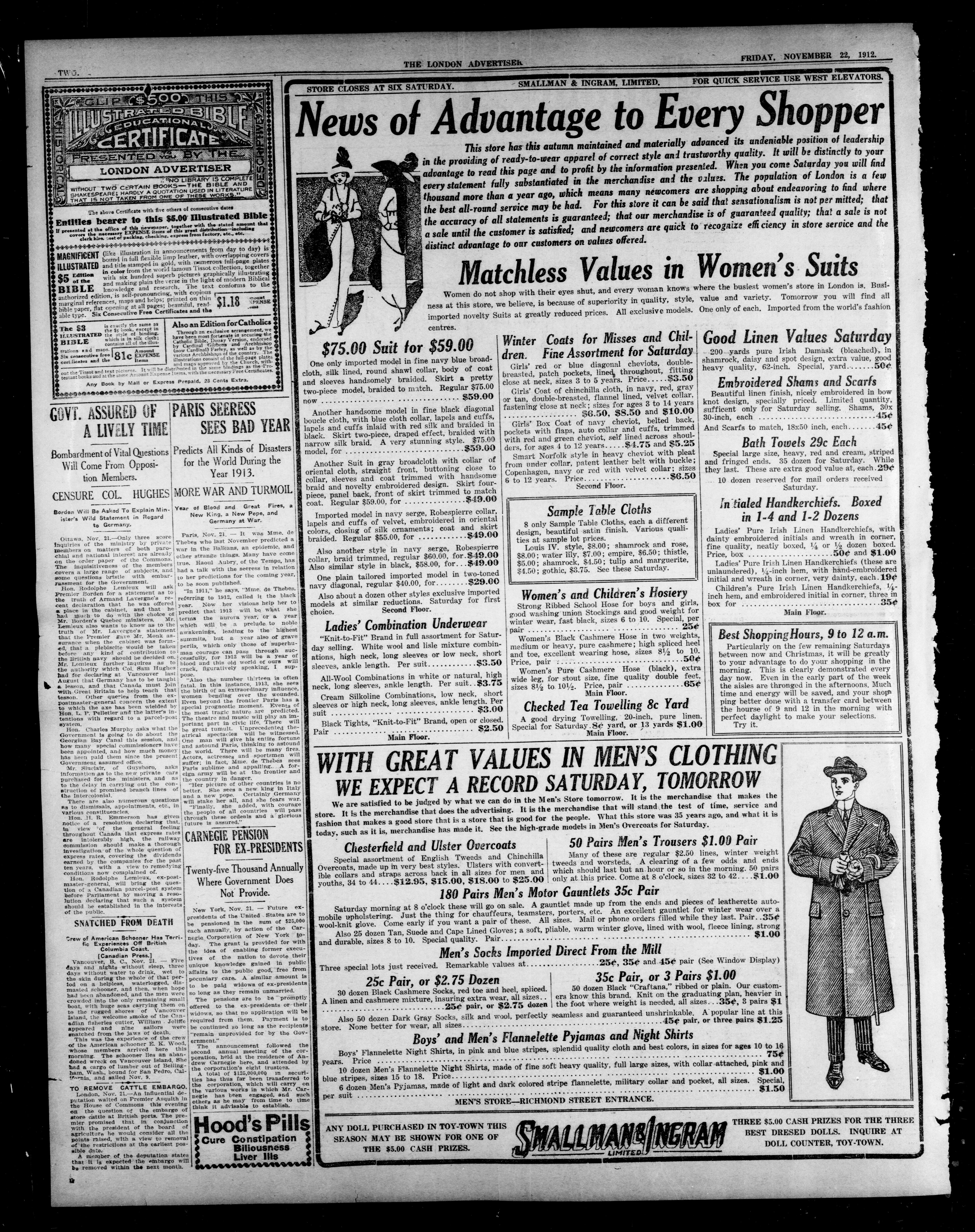 - London Advertiser : 49th Year, No. 20770 (November 22, 1912)