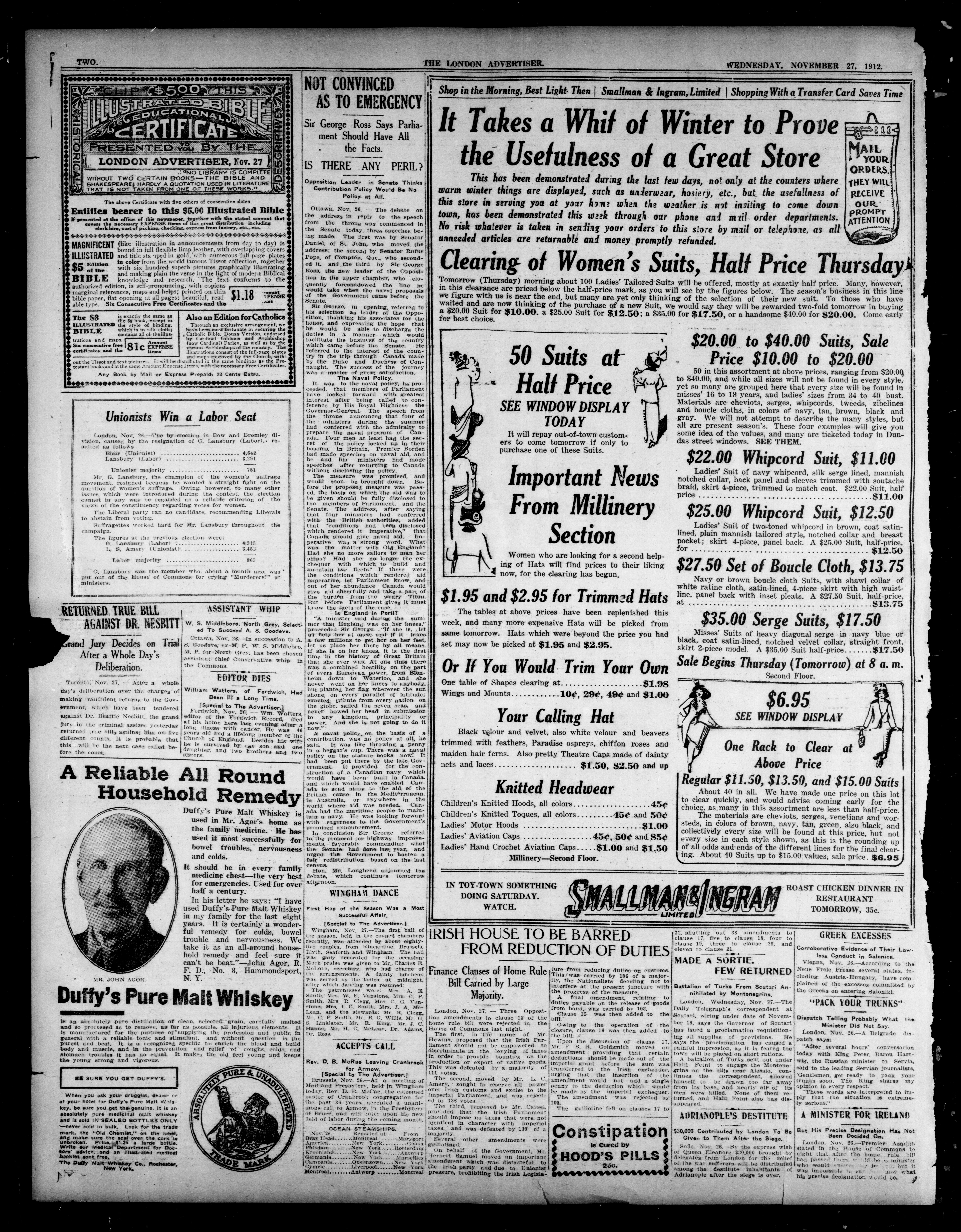 London Advertiser : 49th Year, No. 20774 (November 27, 1912)