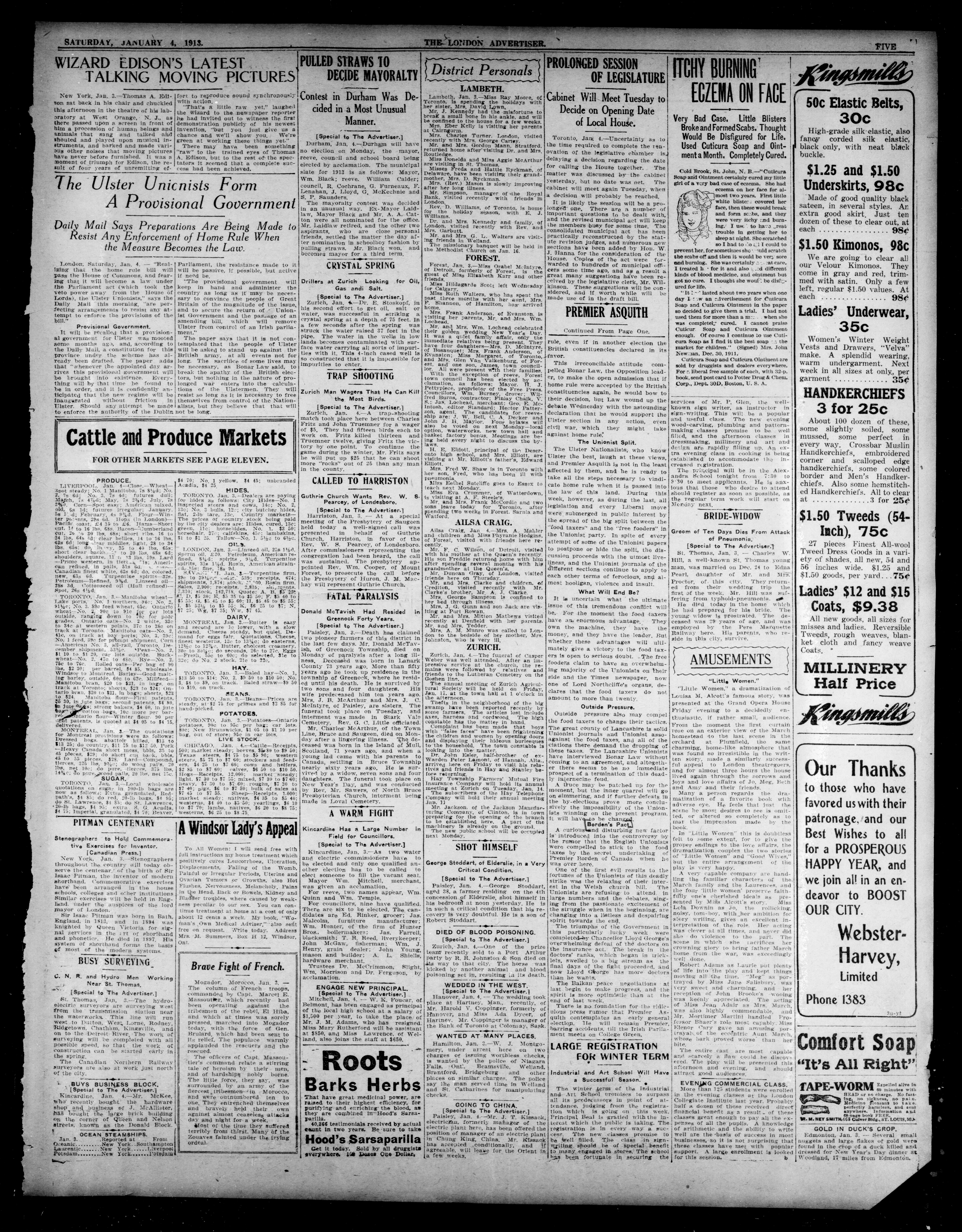 London advertiser. : London Advertiser : 50th Year, No. 20807 (January 4, 1913)