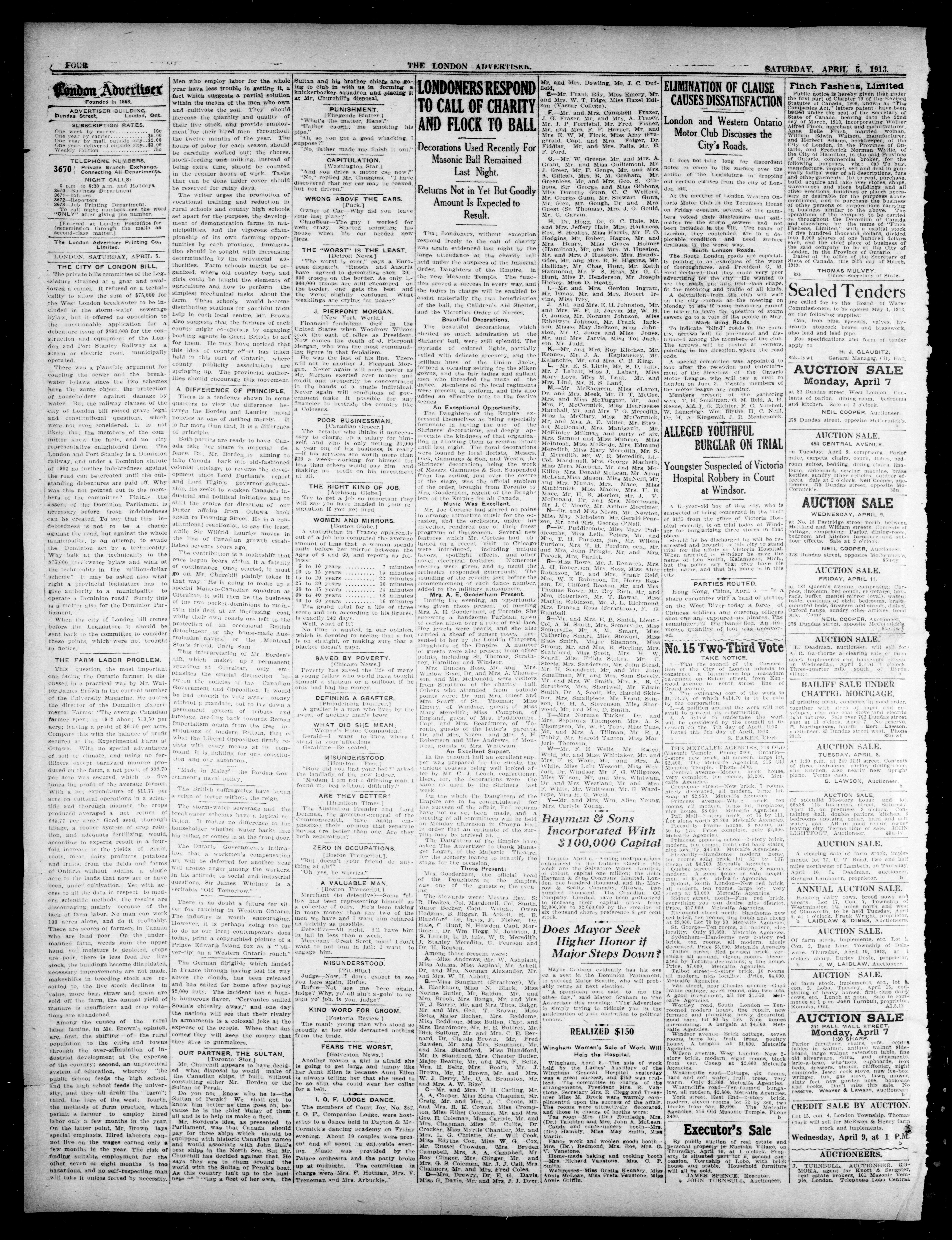 - London Advertiser : 50th Year, No. 20885 (April 5, 1913)