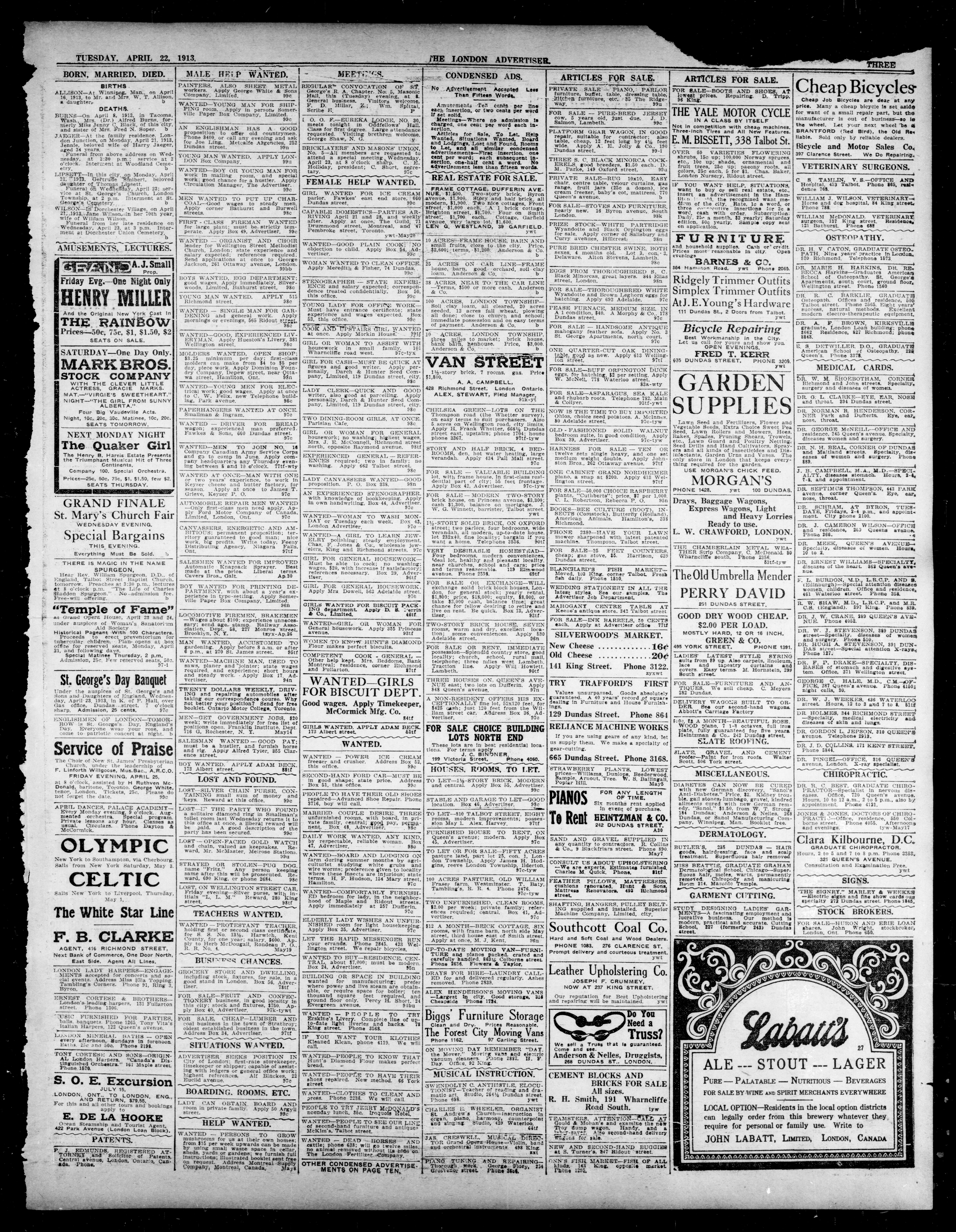 London Advertiser : 50th Year, No. 20899 (April 22, 1913)