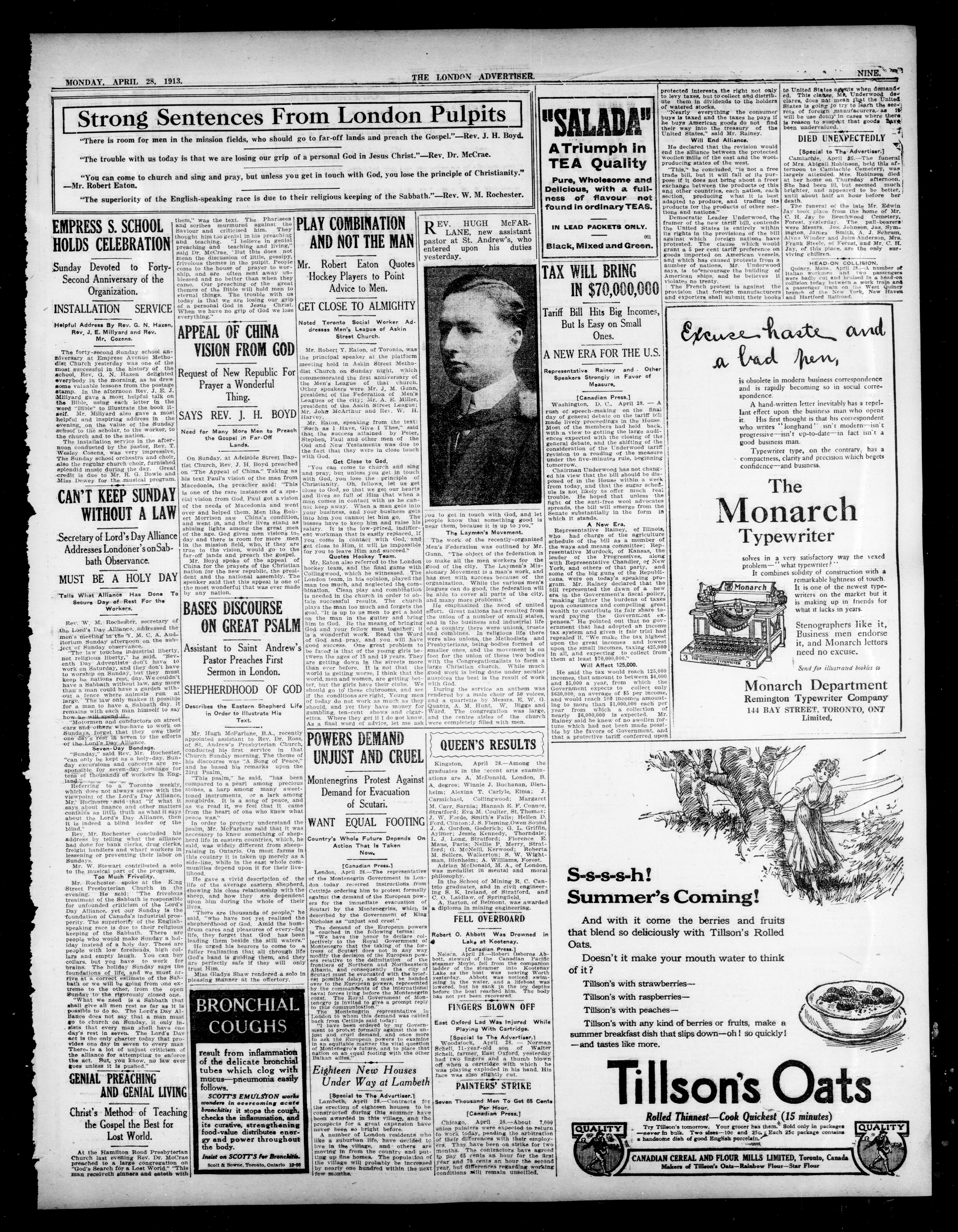 - London Advertiser : 50th Year, No. 20904 (April 28, 1913)