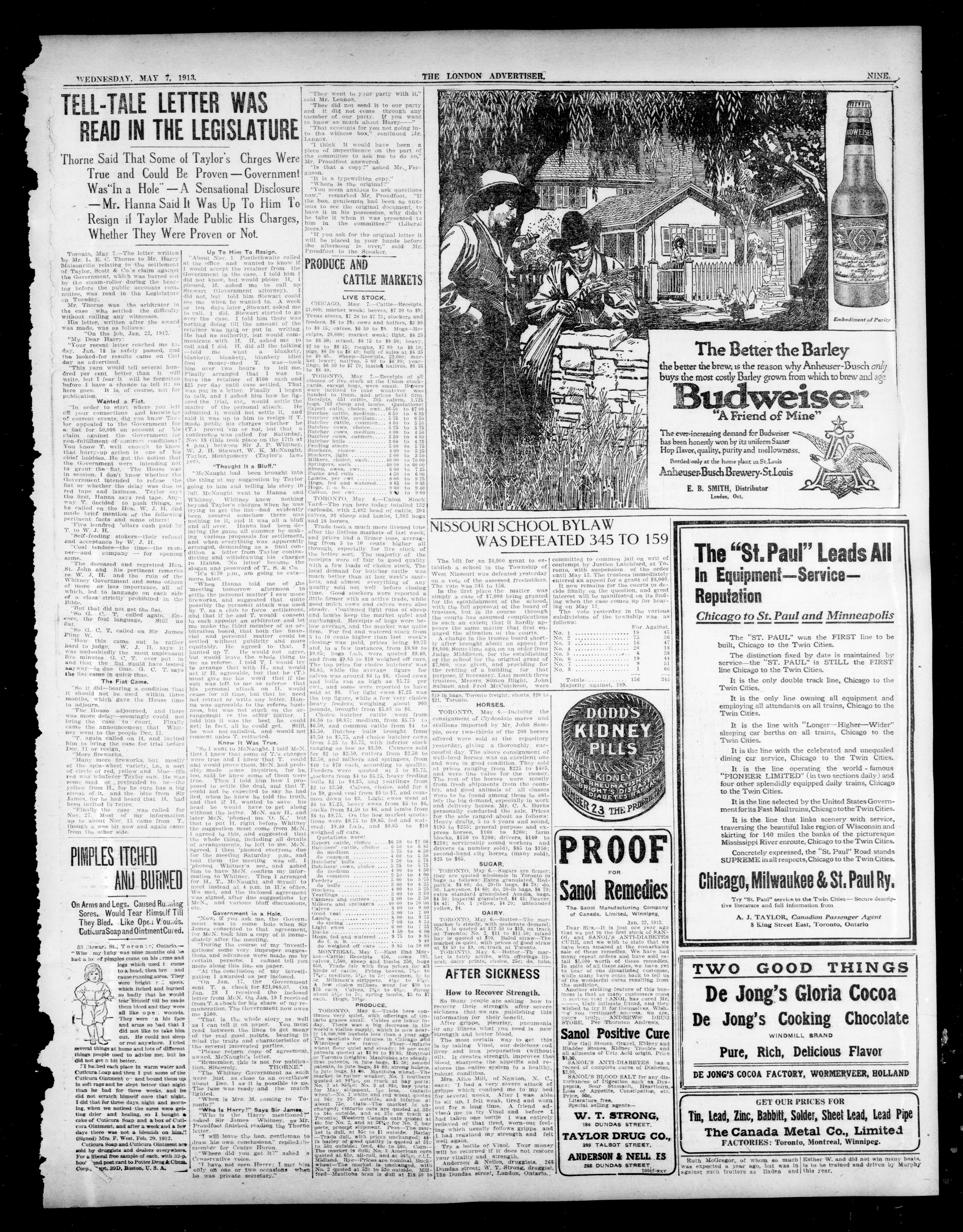 London advertiser. : London Advertiser : 50th Year, No. 20912 (May 7, 1913)