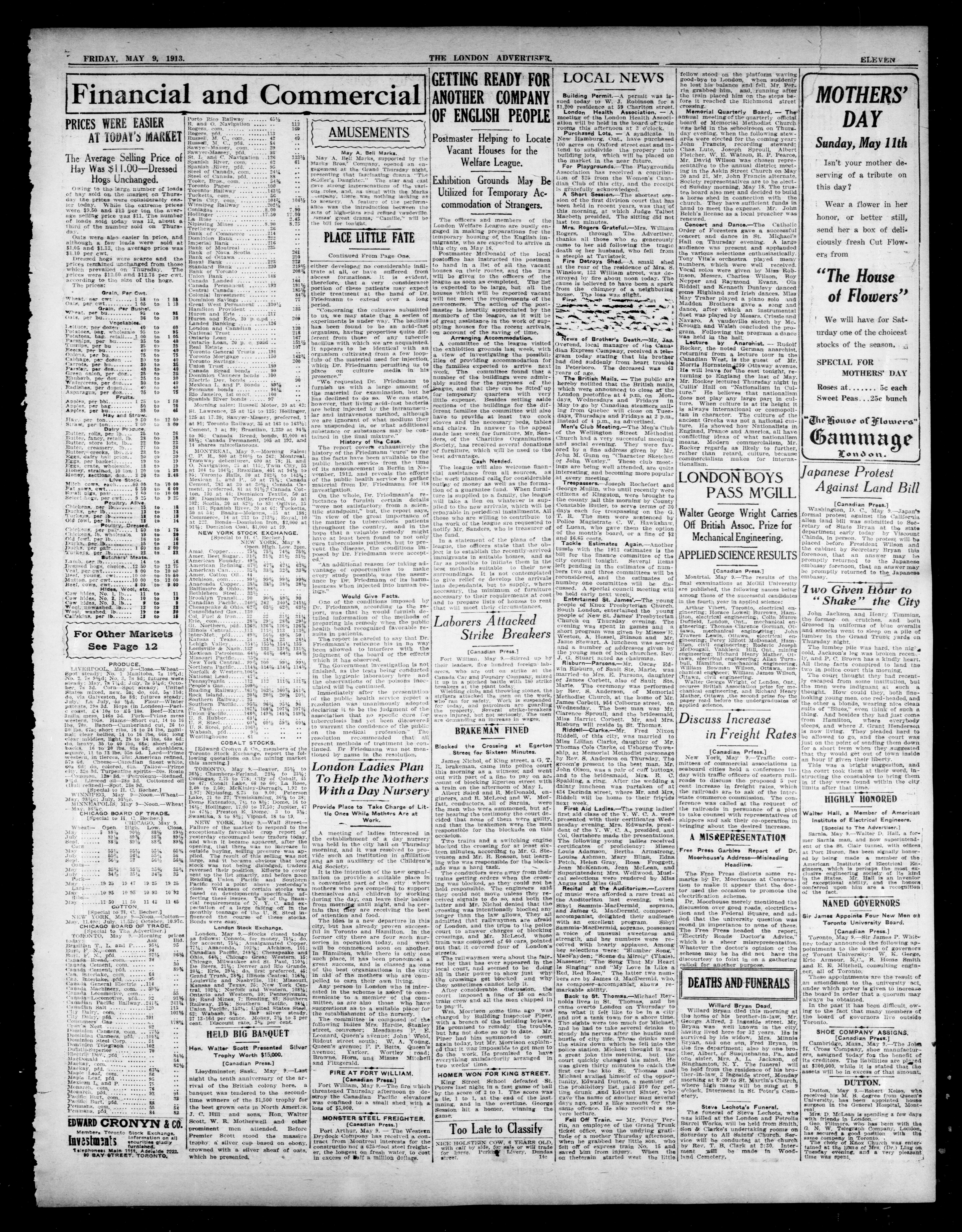 London Advertiser : 50th Year, No. 20914 (May 9, 1913)