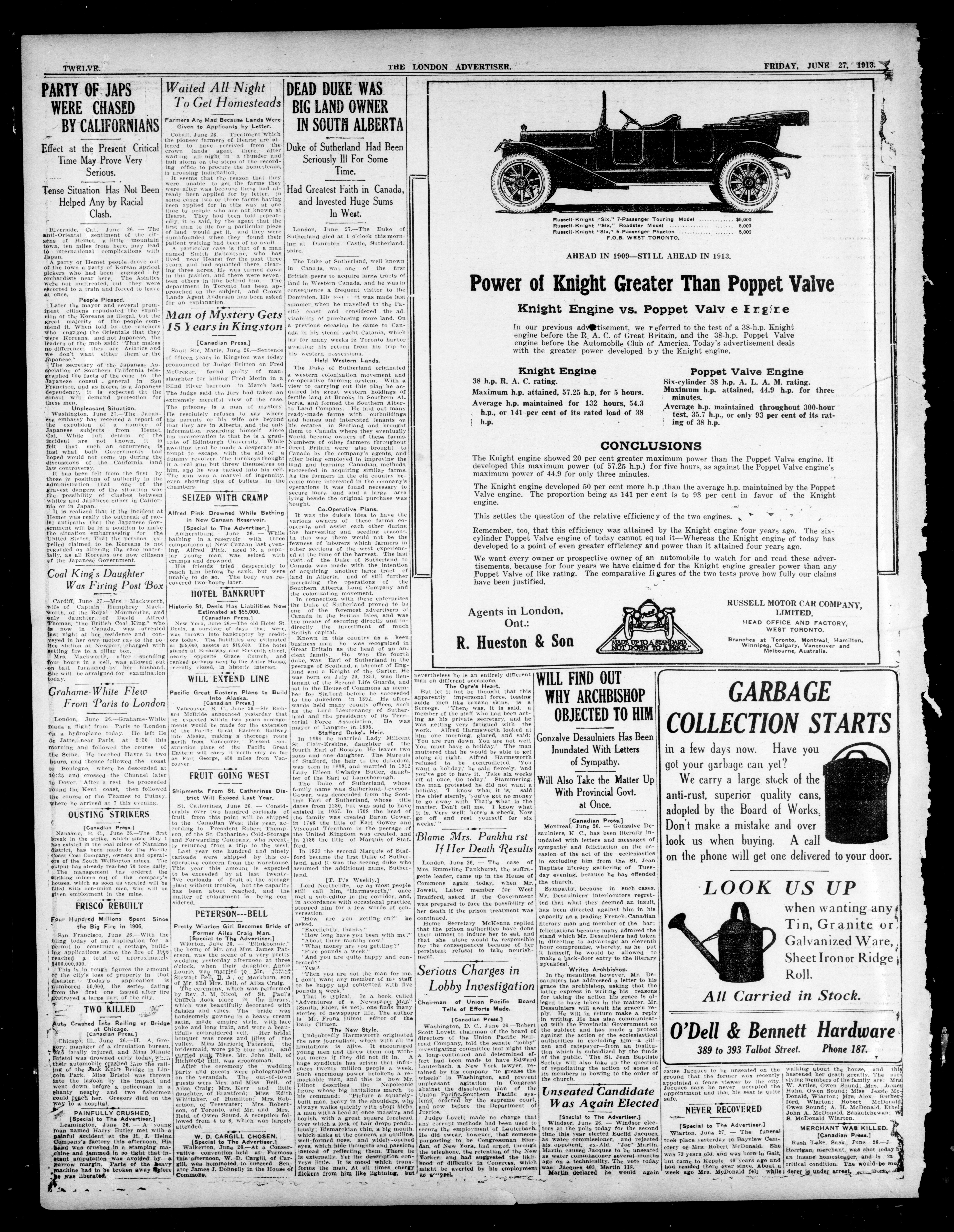 - London Advertiser : 50th Year, No. 20956 (June 27, 1913)