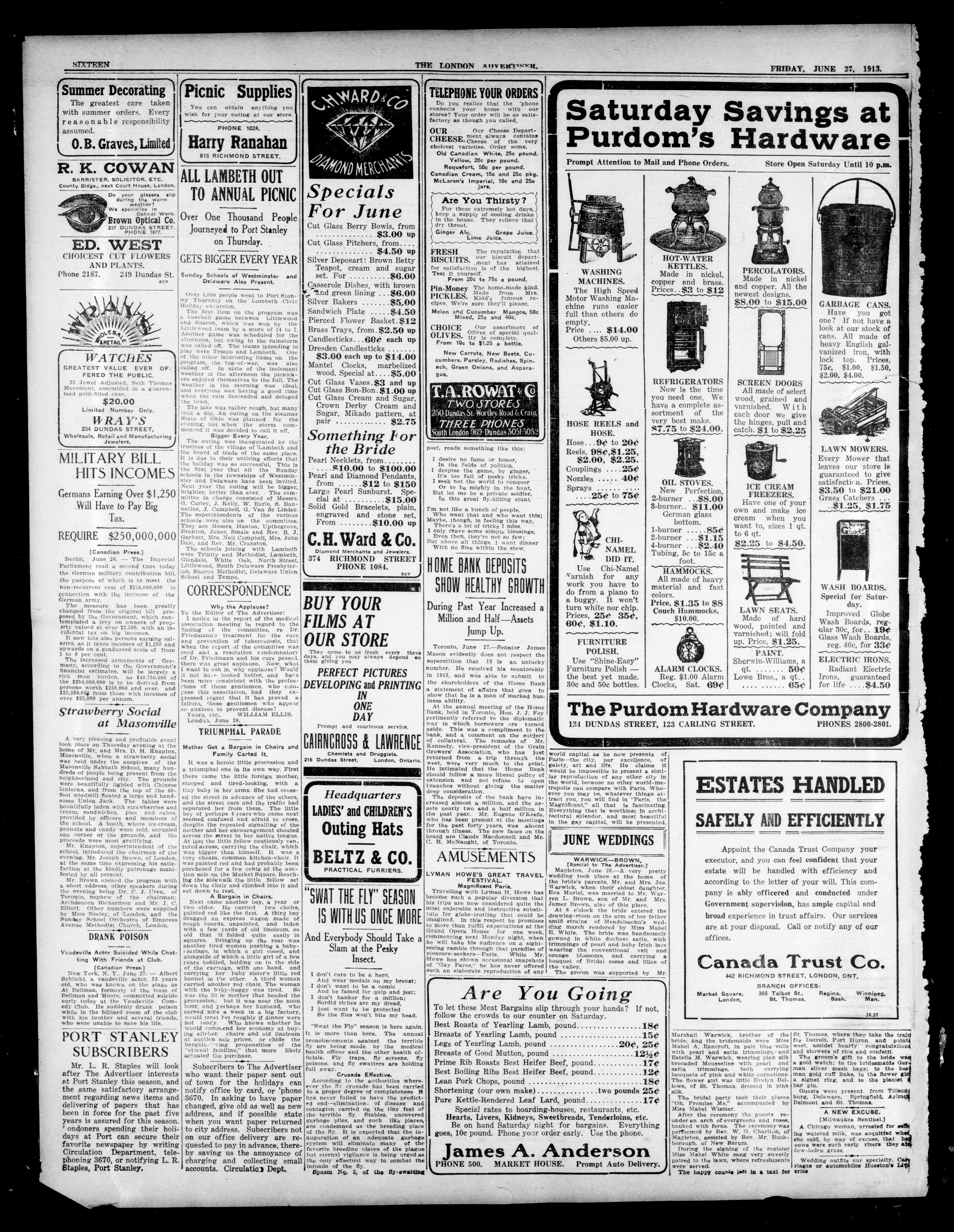 - London Advertiser : 50th Year, No. 20956 (June 27, 1913)