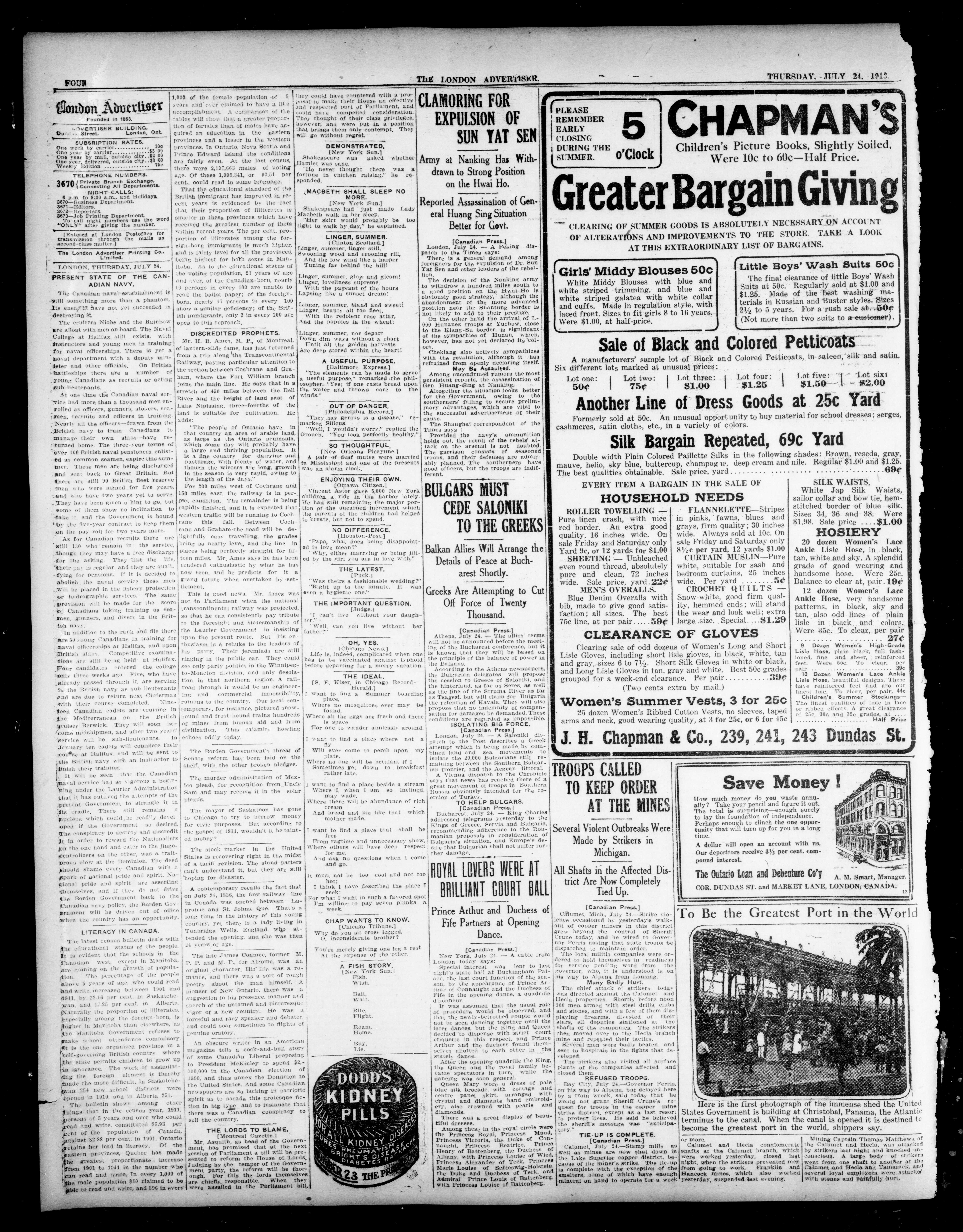 London Advertiser : 50th Year, No. 20978 (July 24, 1913)