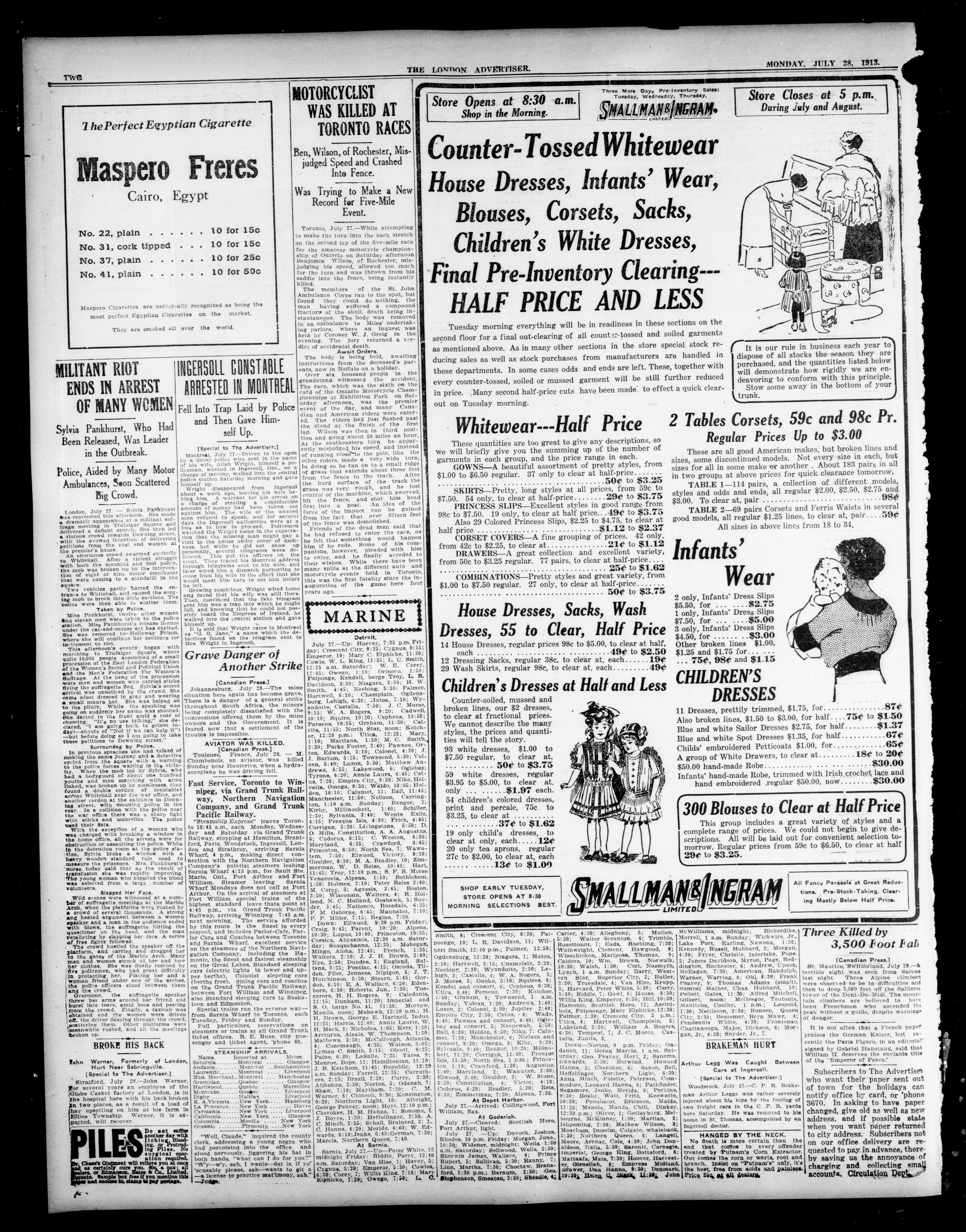 London Advertiser : 50th Year, No. 20981 (July 28, 1913)