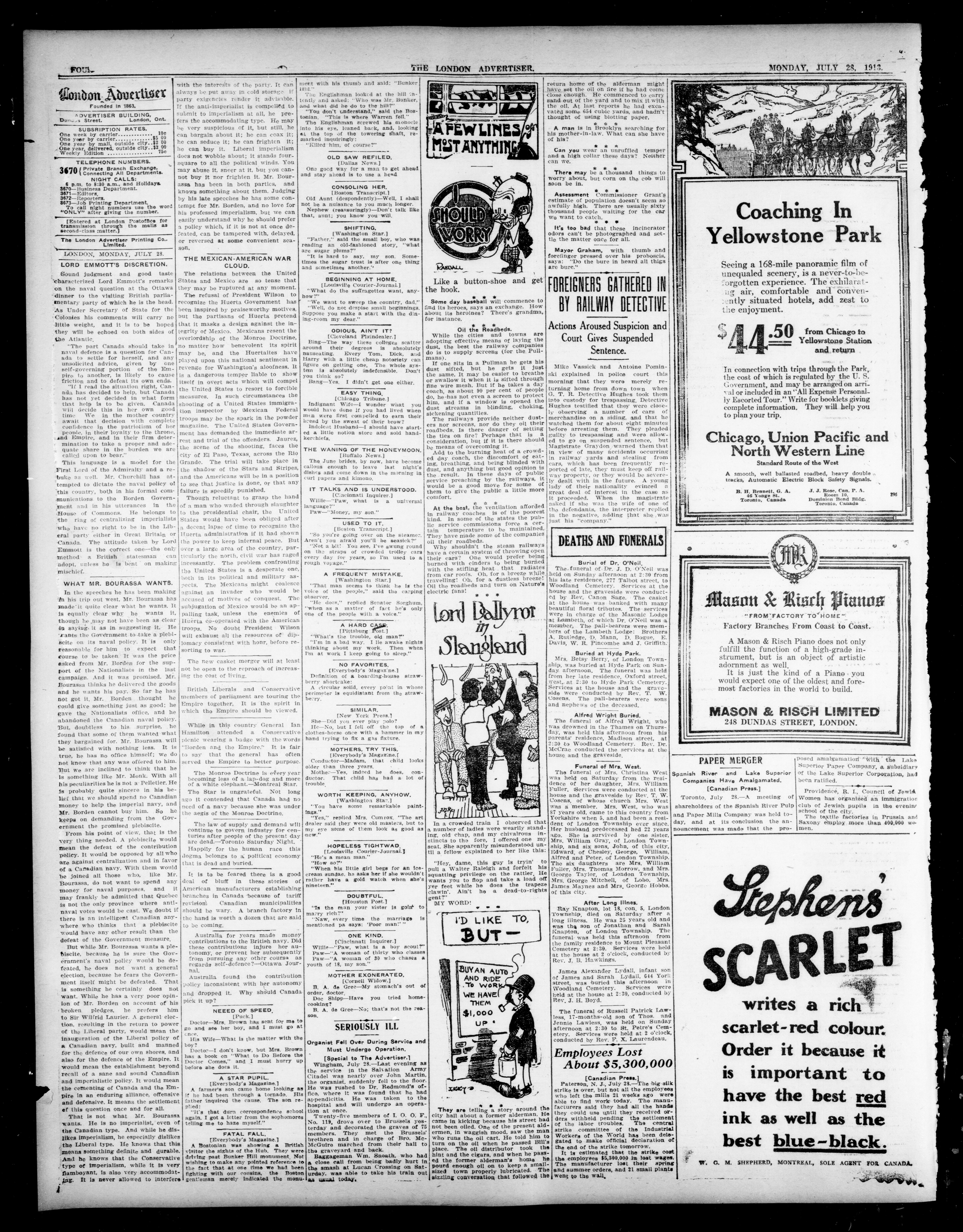 London Advertiser : 50th Year, No. 20981 (July 28, 1913)