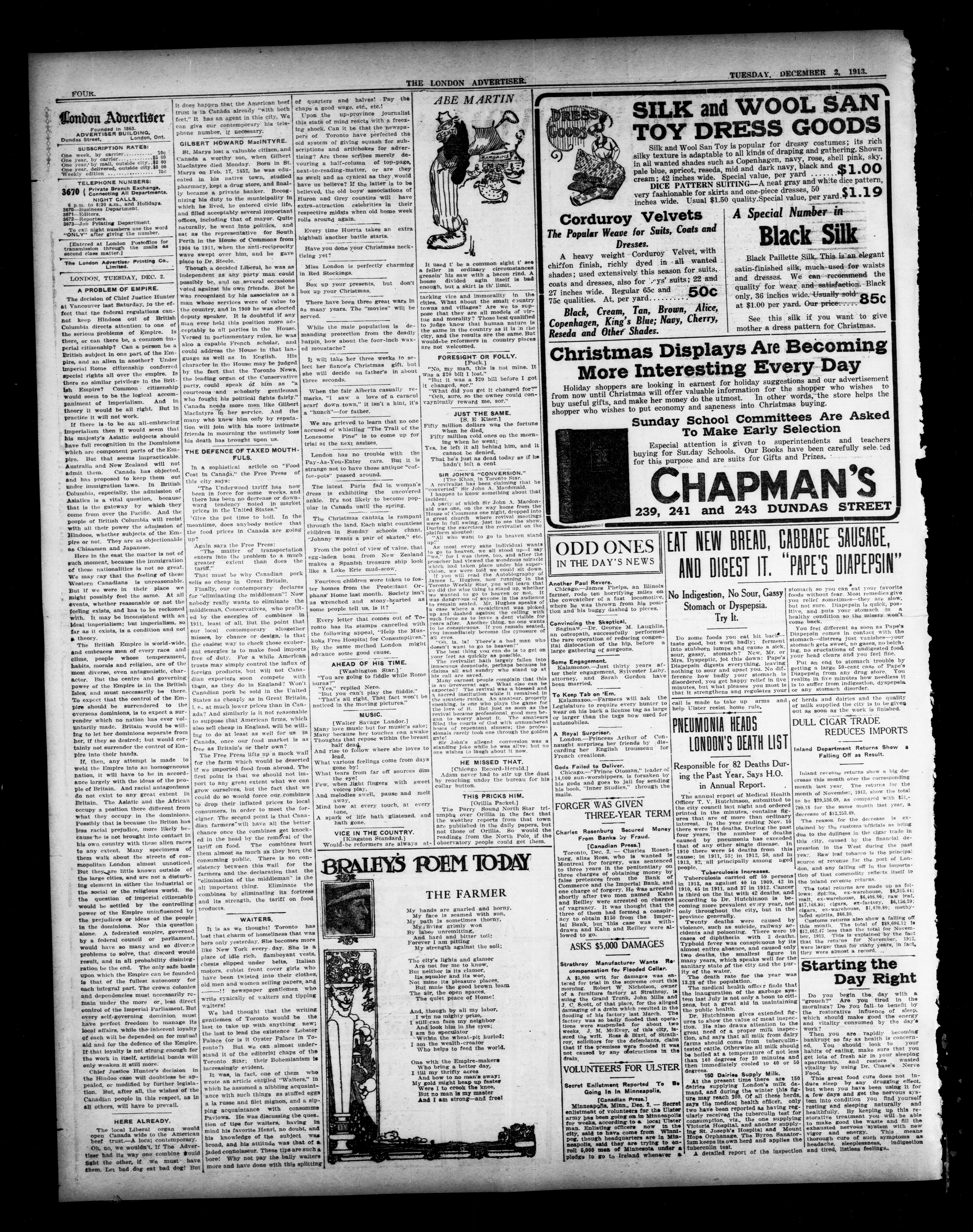 The London Advertiser : 51st Year, No. 21091 (December 2, 1913)