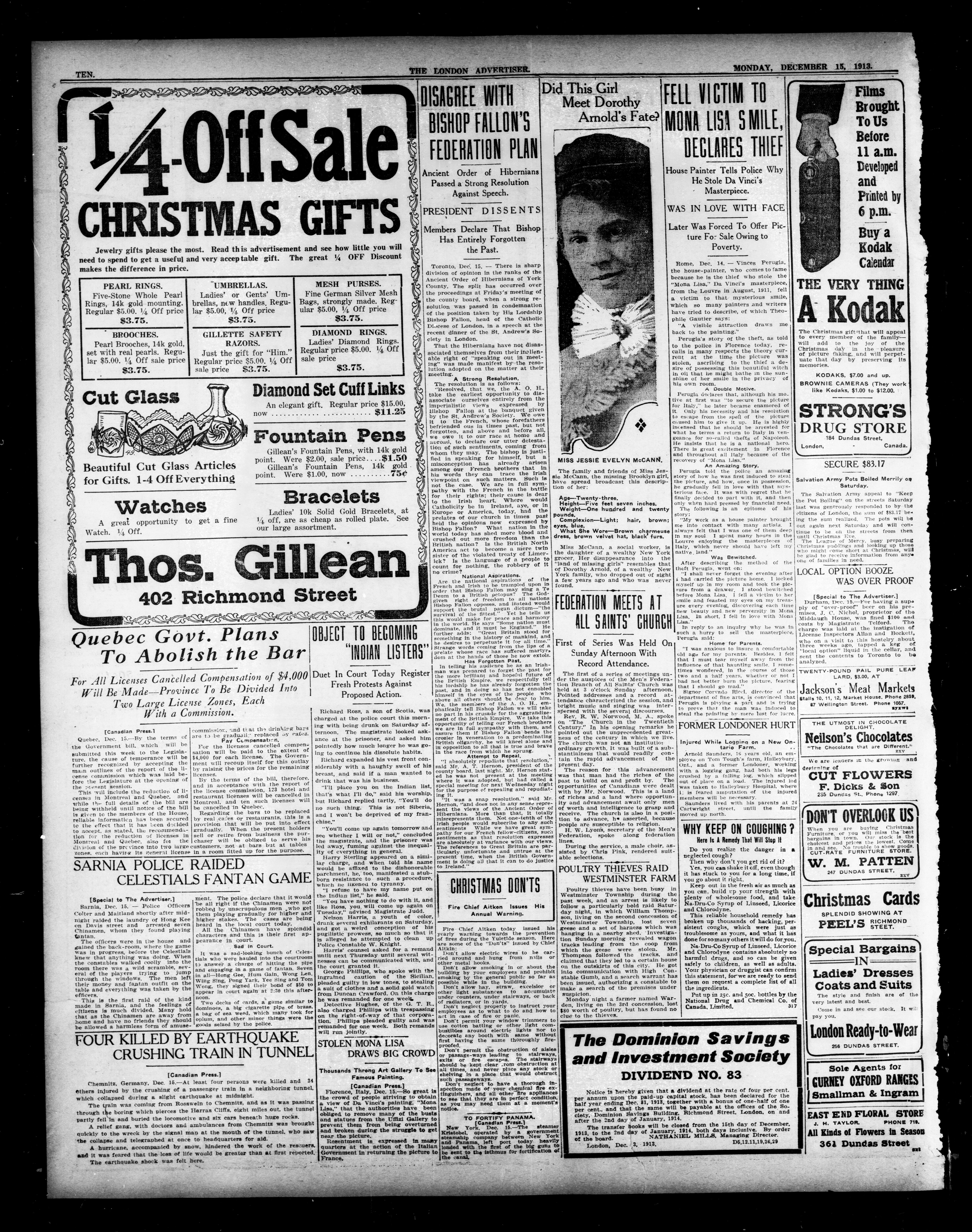 London advertiser. : The London Advertiser : 51st Year, No. 21102 (December 15, 1913)