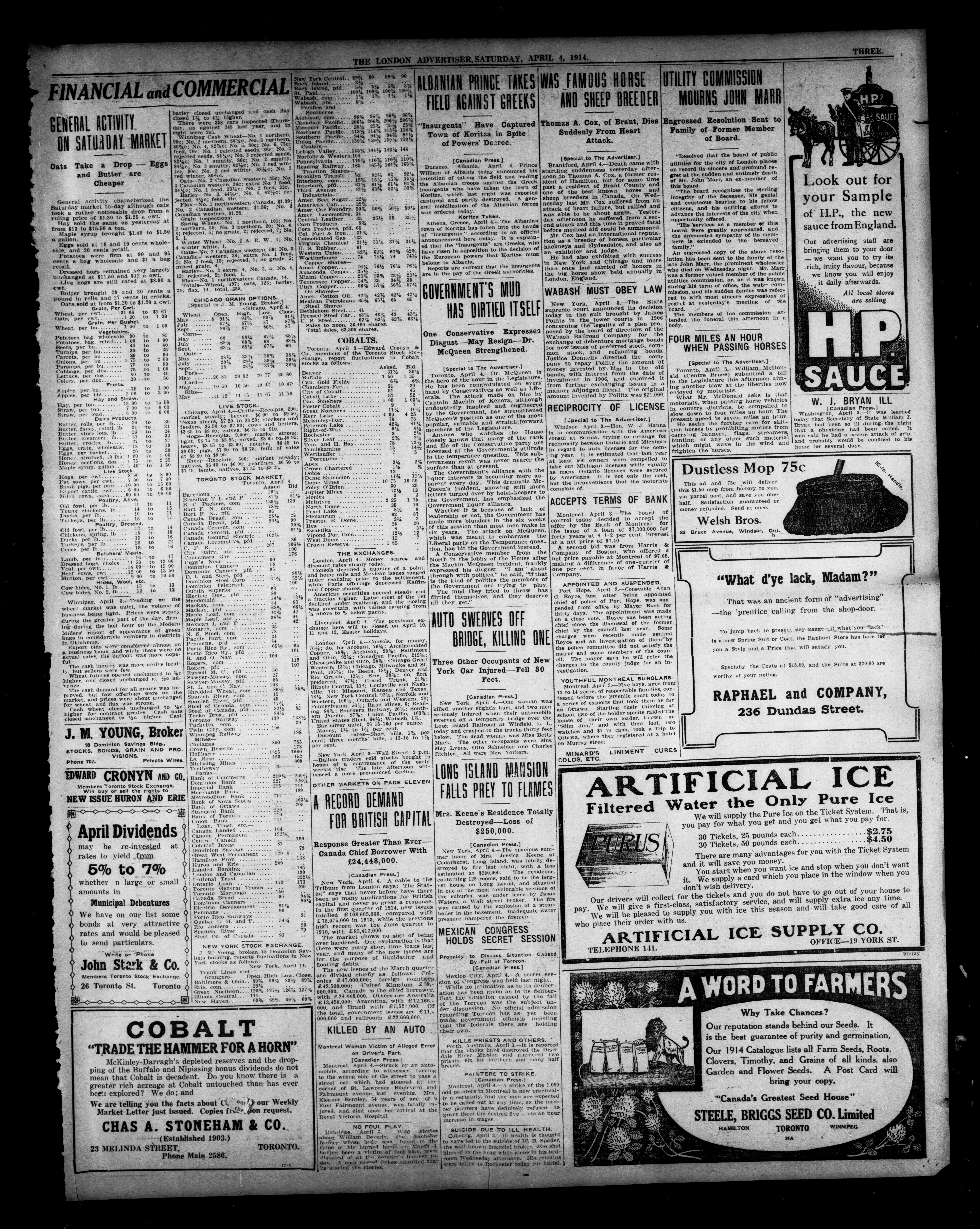 - The London Advertiser : 51st Year, No. 21197 (April 4, 1914)