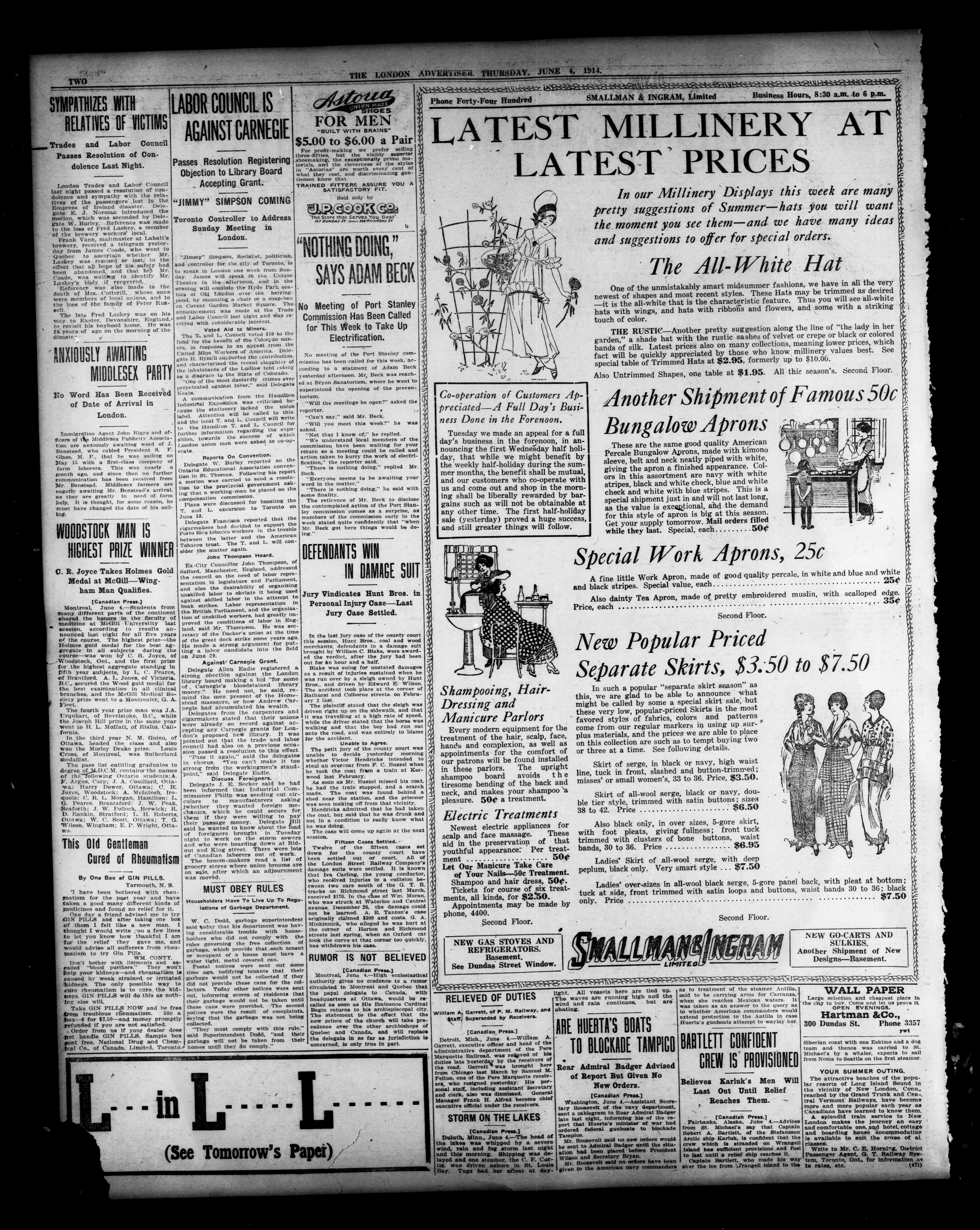 London advertiser. : The London Advertiser : 51st Year, No. 22049 (June 4, 1914)