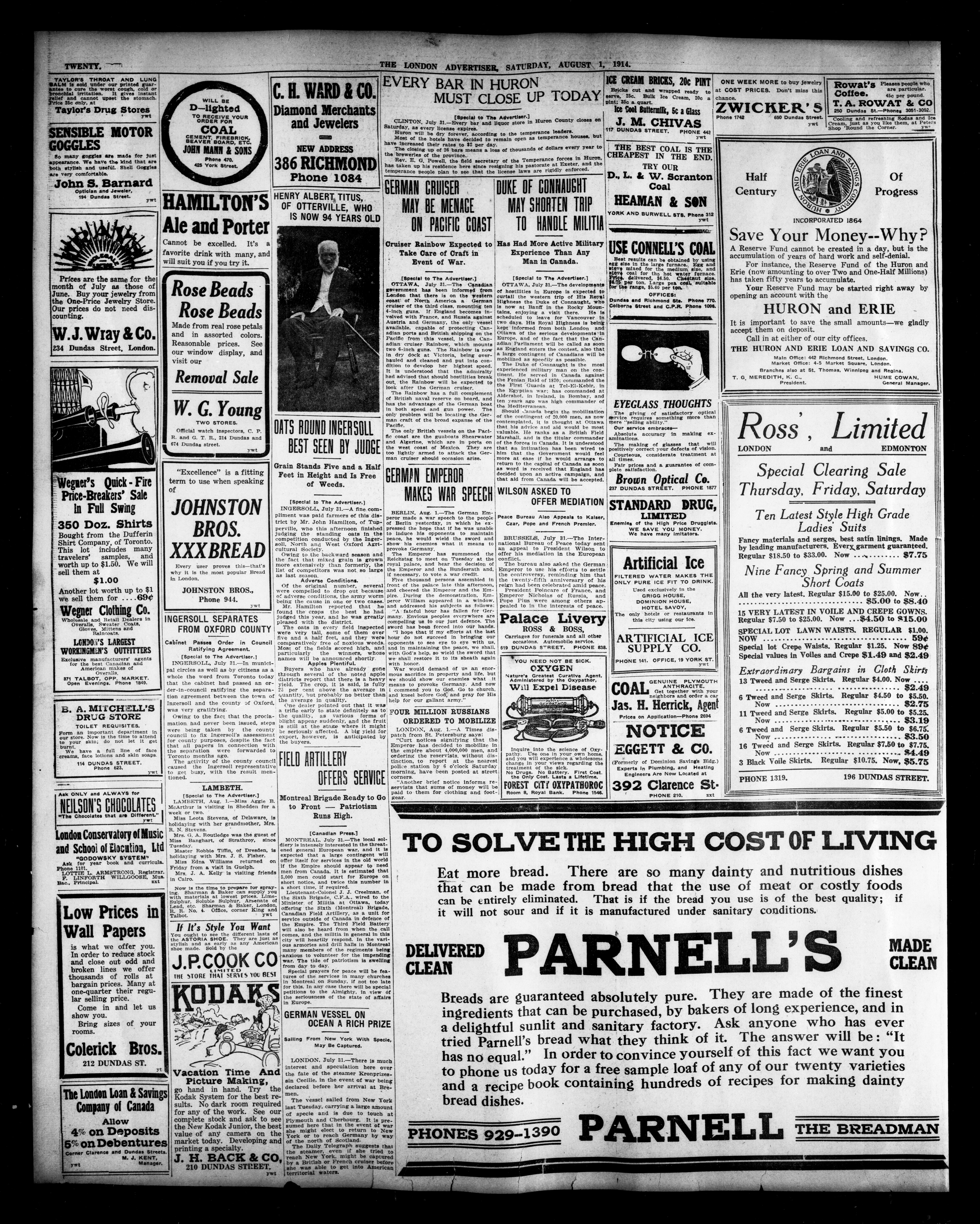 - The London Advertiser : 51st Year, No. 22099 (August 1, 1914)