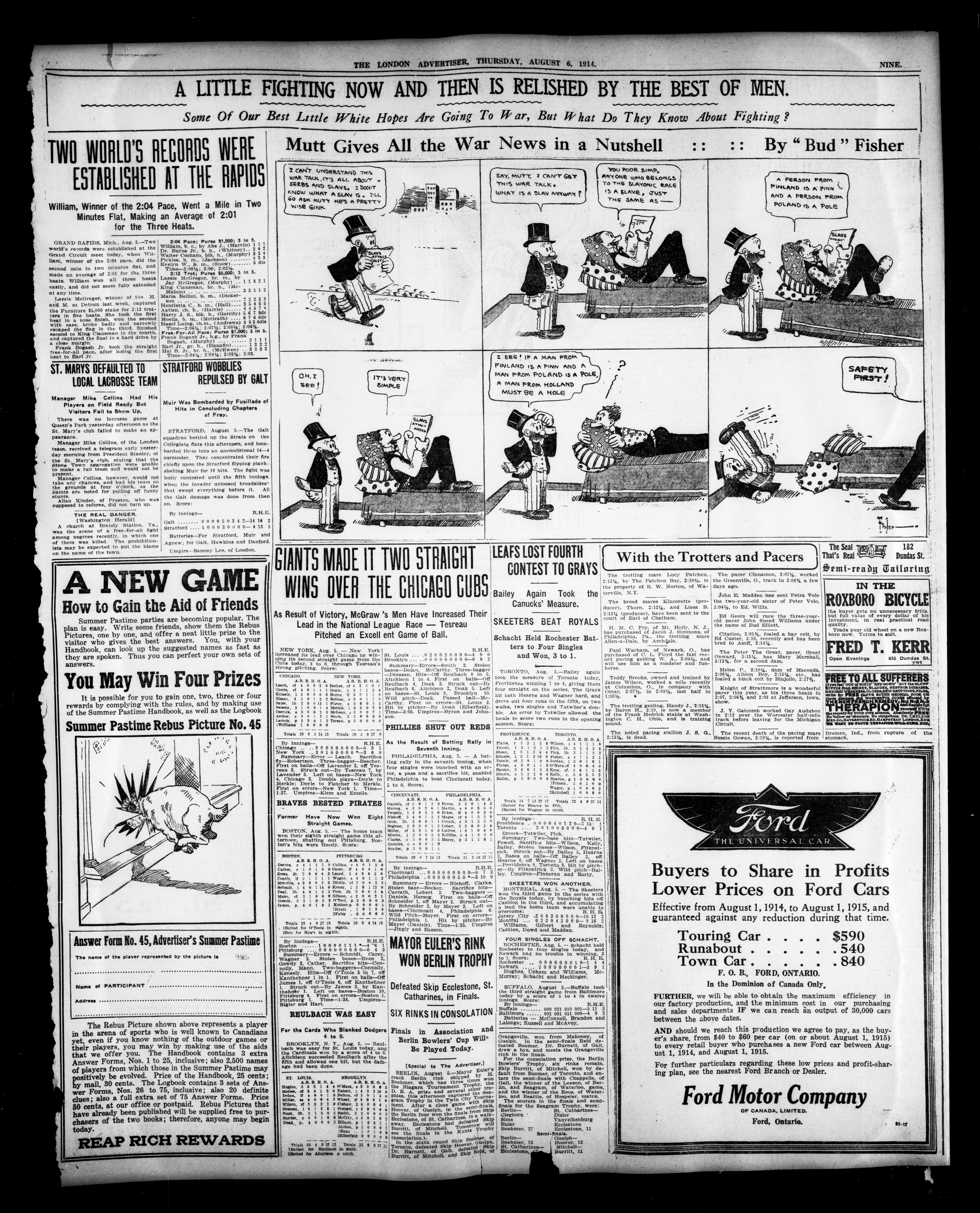 - The London Advertiser : 51st Year, No. 22103 (August 6, 1914)