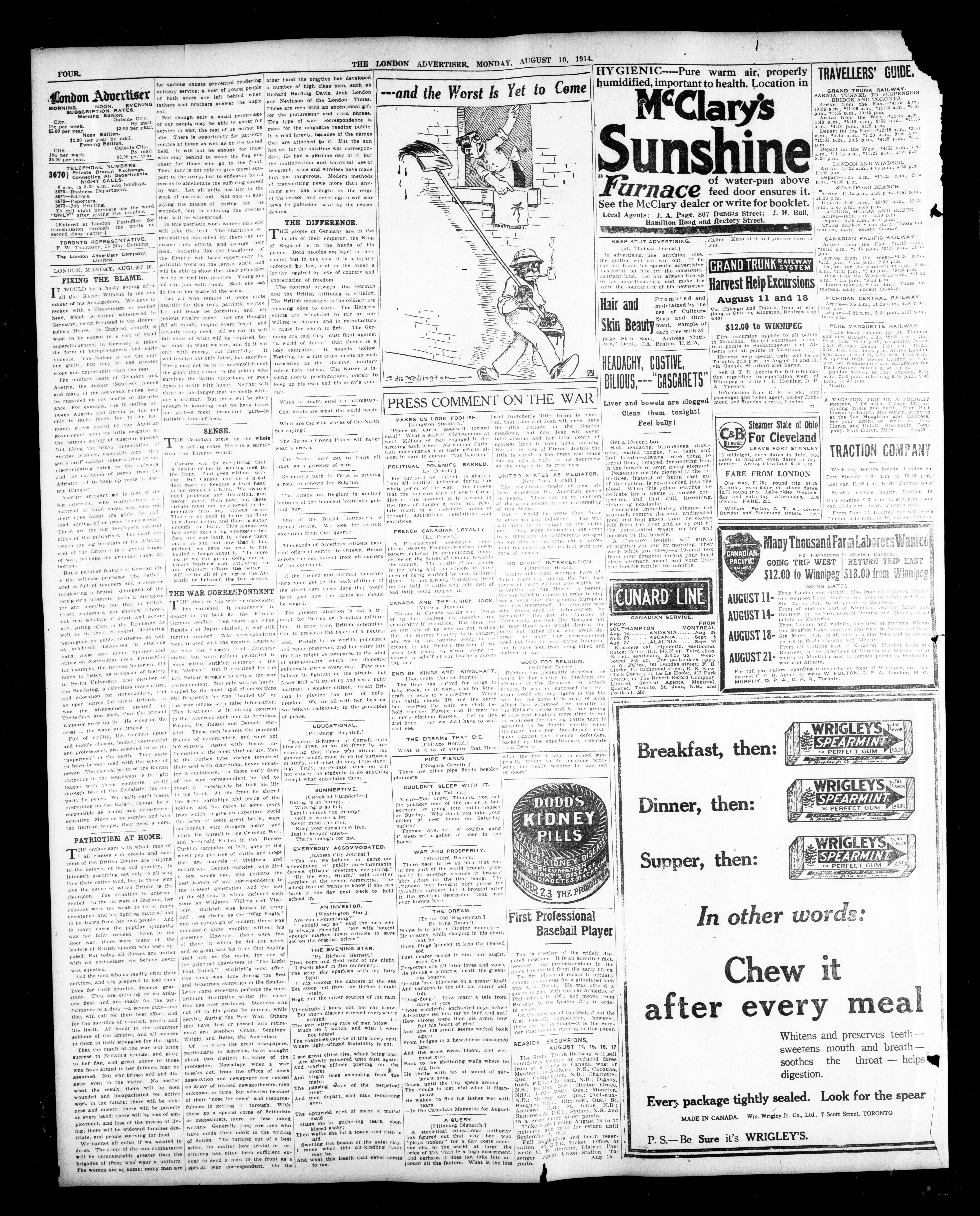 - The London Advertiser : 51st Year, No. 22106 (August 10, 1914)