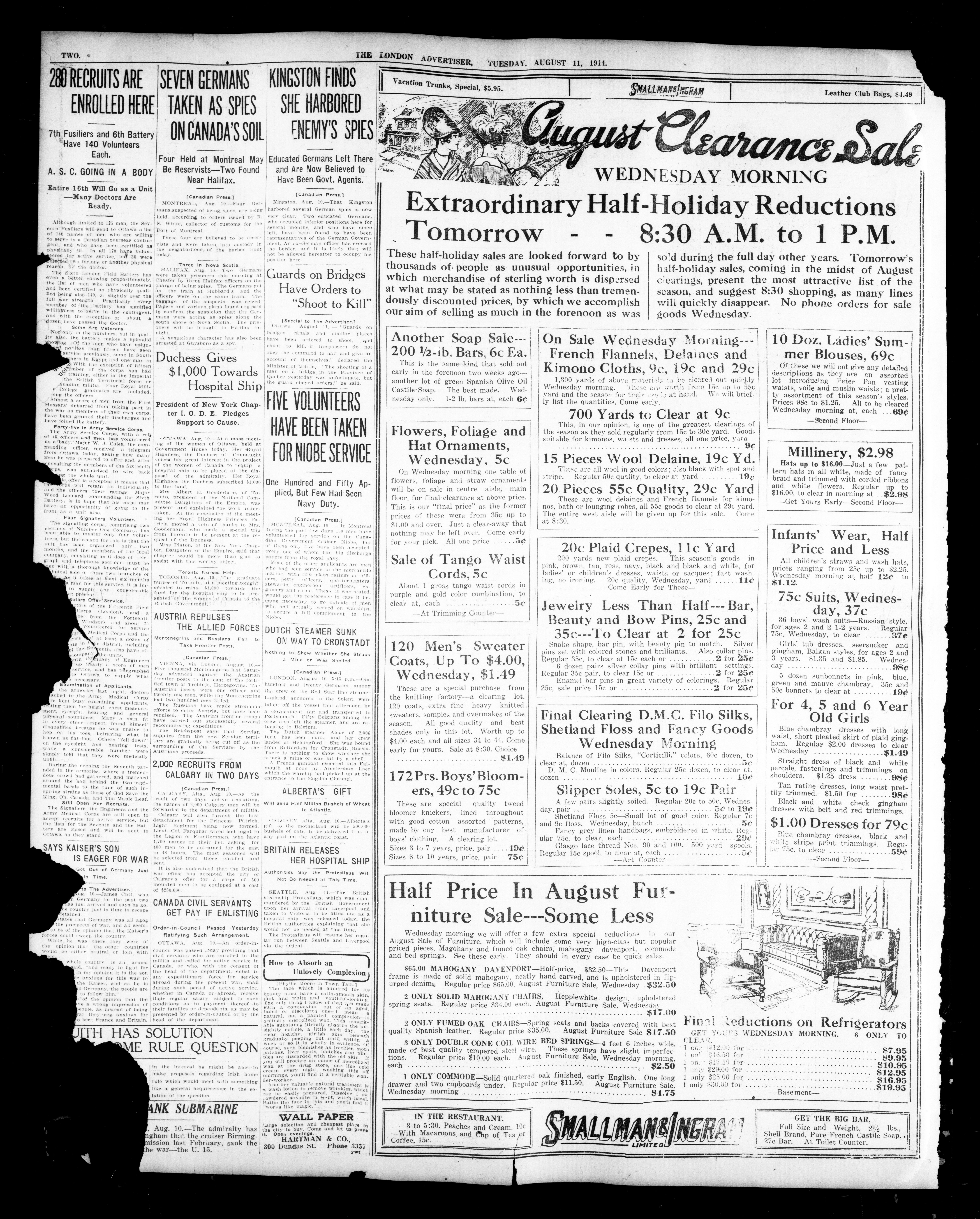 - The London Advertiser : 51st Year, No. 22107 (August 11, 1914)