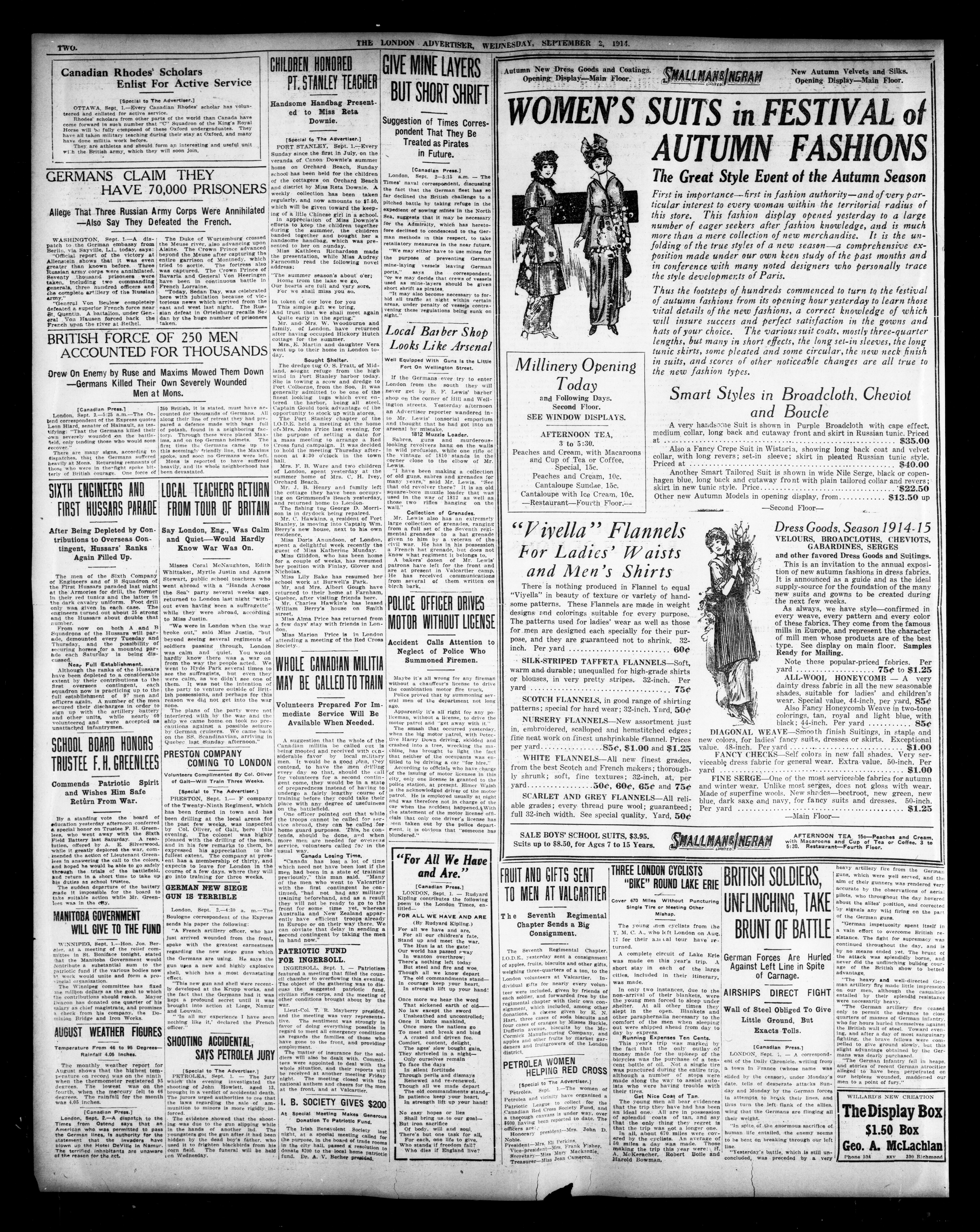 - The London Advertiser : 51st Year, No. 22126 (September 2, 1914)