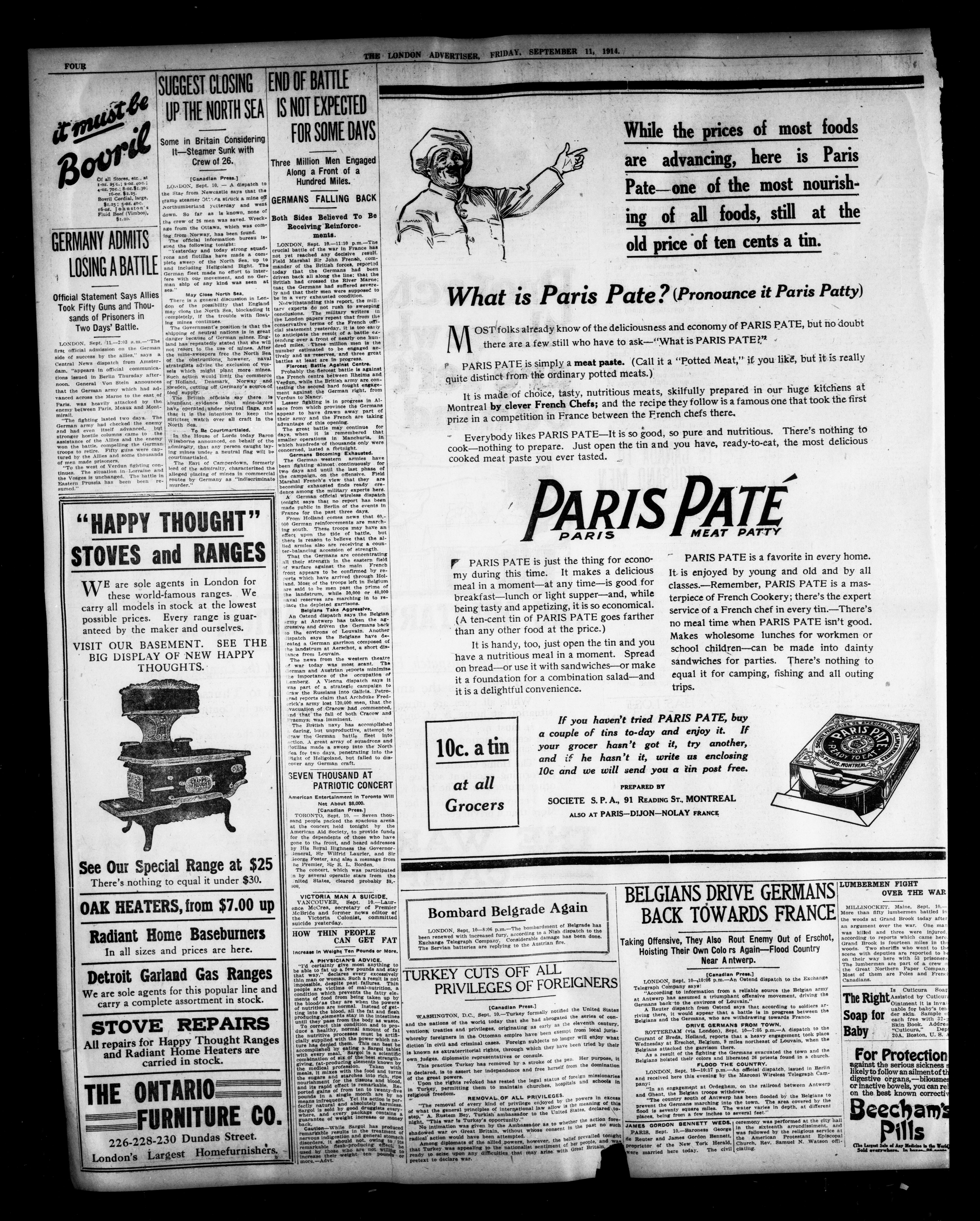 London advertiser. : The London Advertiser : 51st Year, No. 22134 (September 11, 1914)