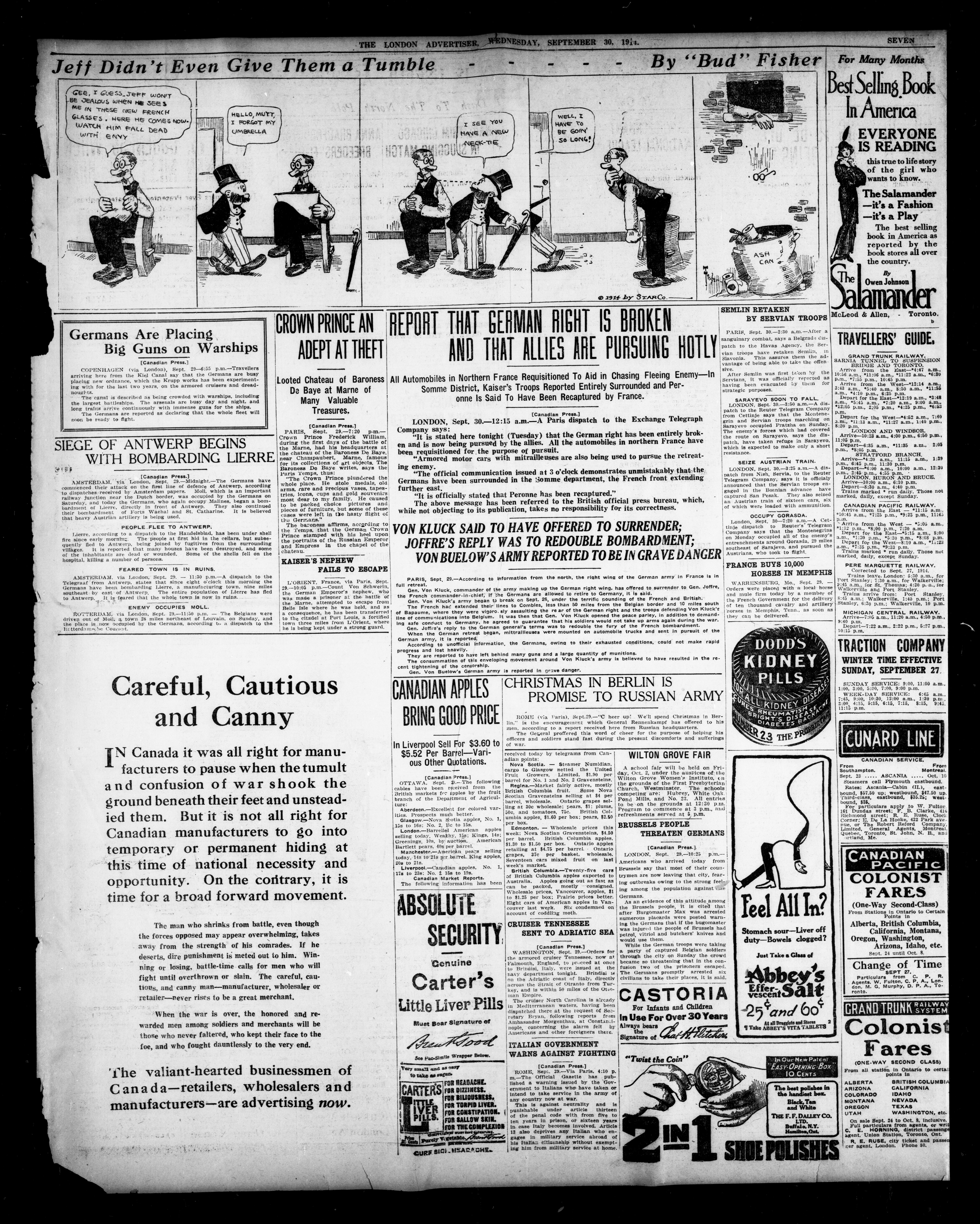 London advertiser. : The London Advertiser : 51st Year, No. 22150 (September 30, 1914)