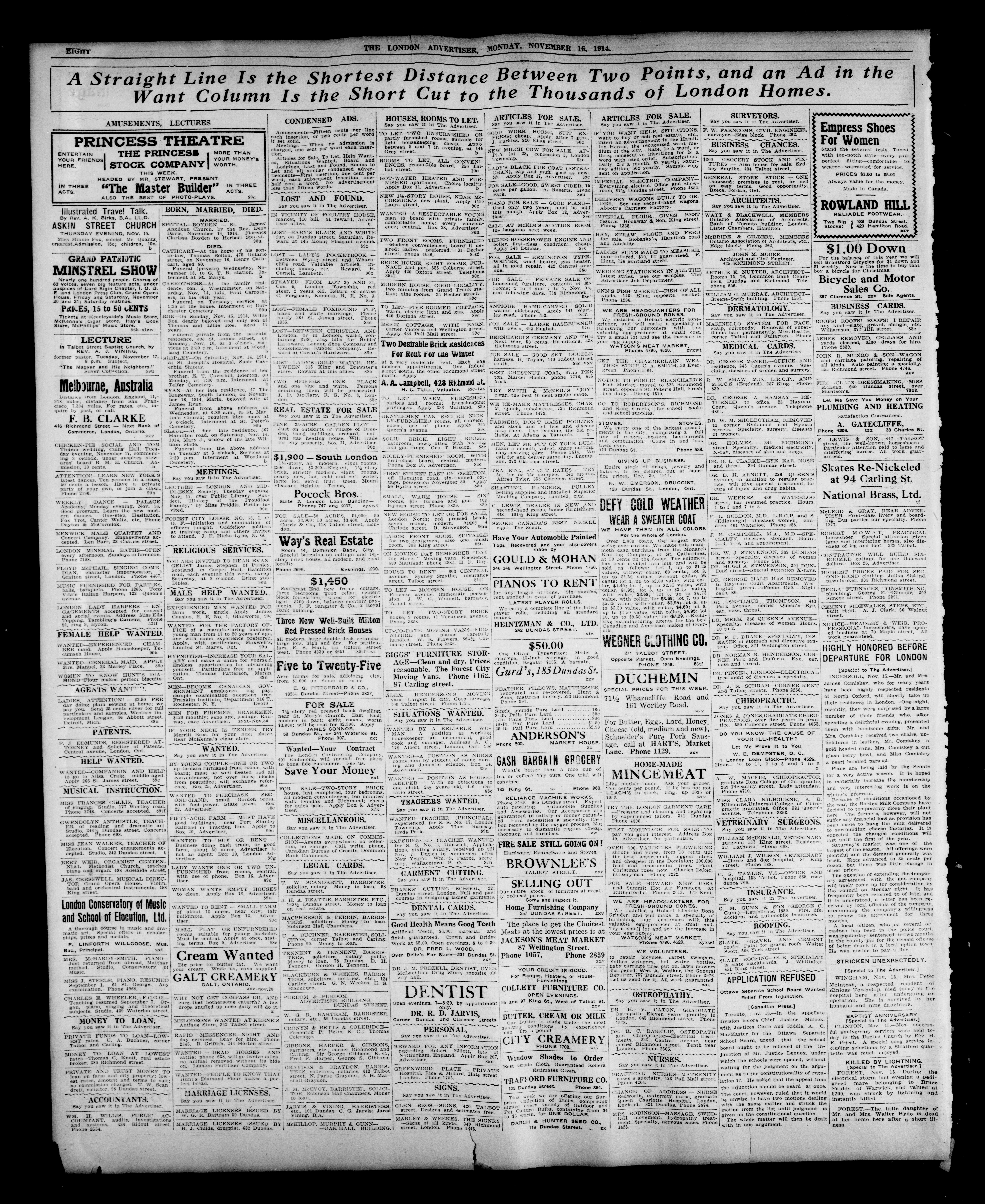 London advertiser. : The London Advertiser : 51st Year, No. 22190 (November 16, 1914)