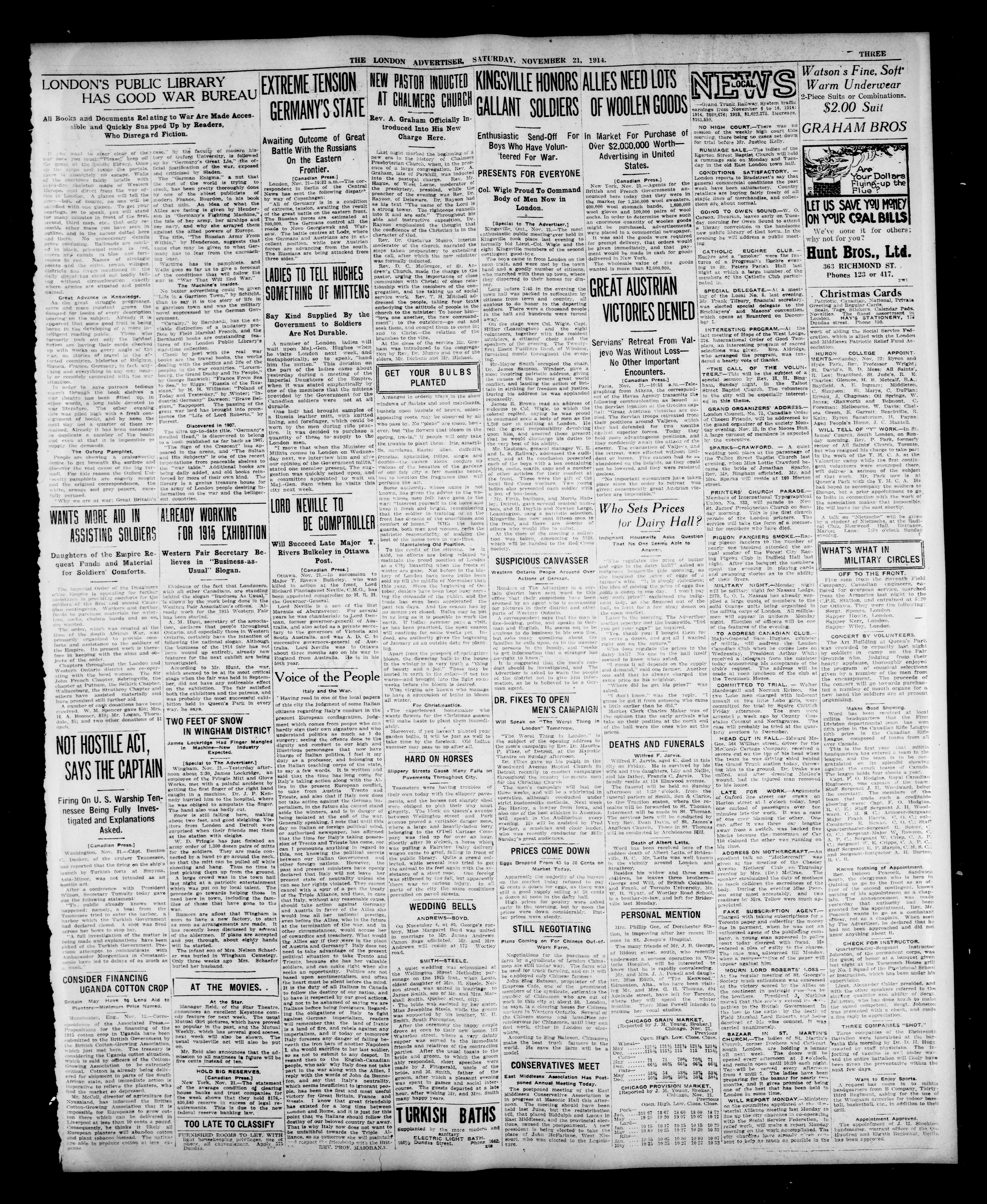 London advertiser. : The London Advertiser : 52nd Year, No. 22195 (November 21, 1914)