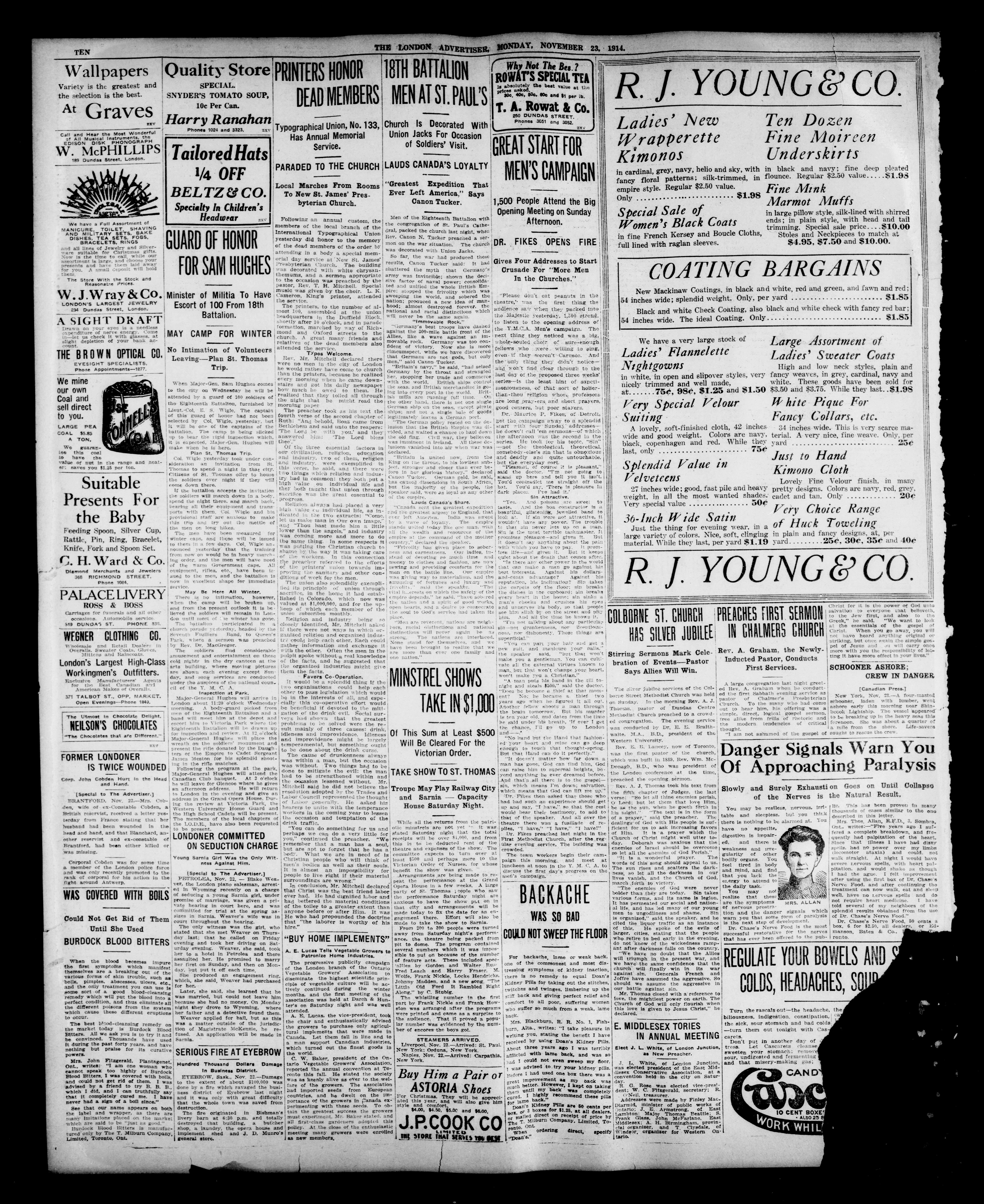 - The London Advertiser : 52nd Year, No. 22196 (November 23, 1914)
