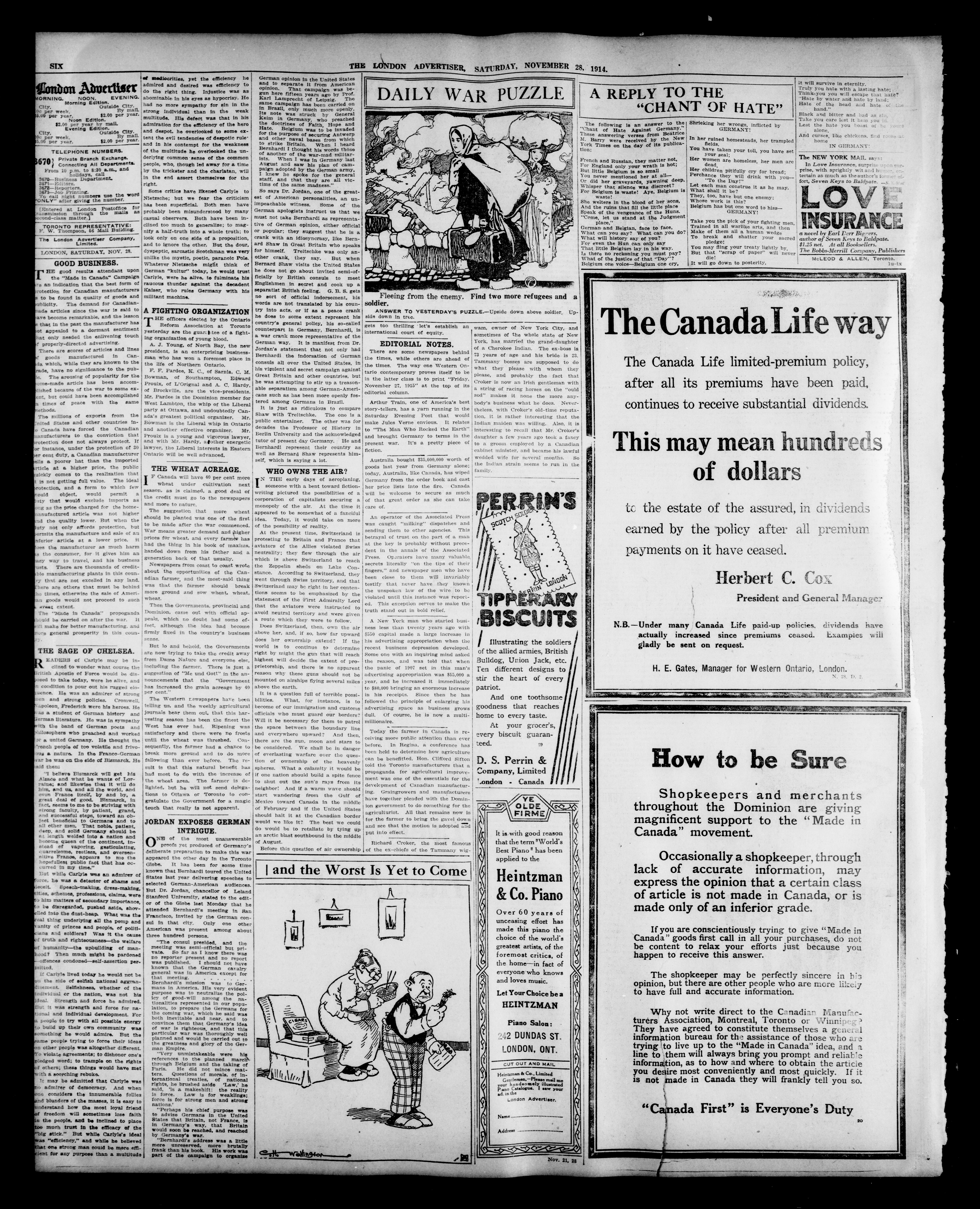 - The London Advertiser : 52nd Year, No. 22201 (November 28, 1914)