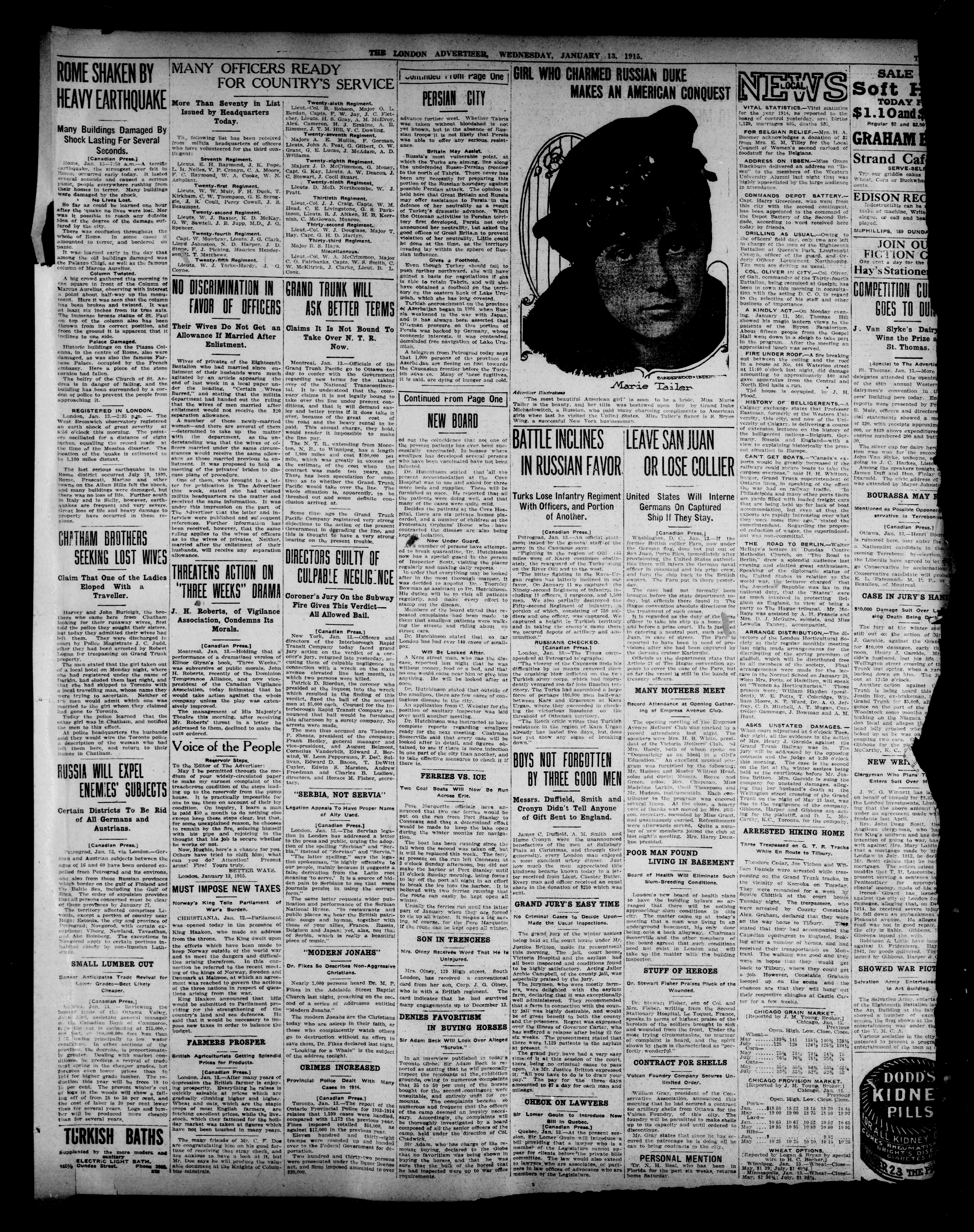 - The London Advertiser : 52nd Year, No. 22240 (January 13, 1915)