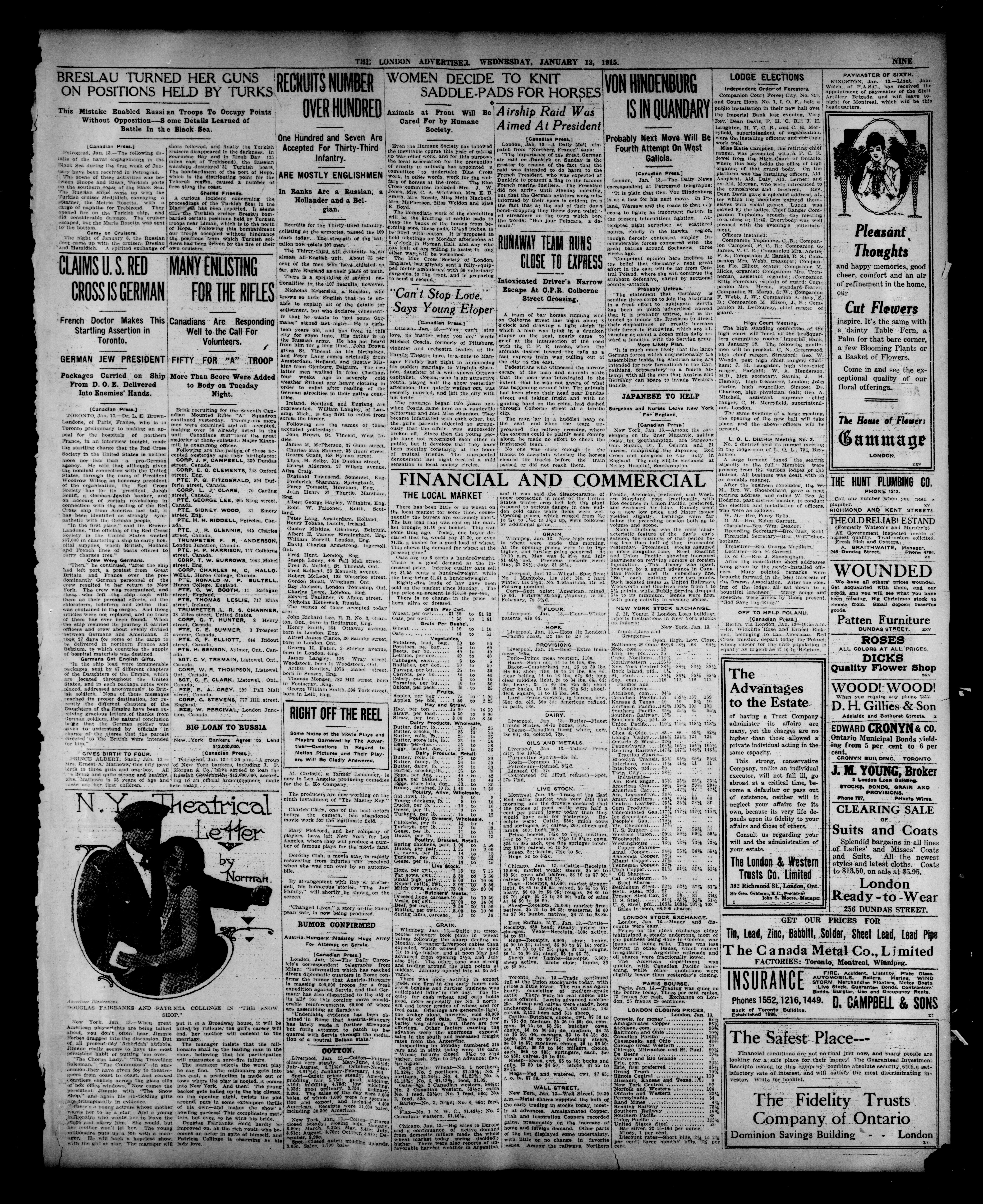 The London Advertiser : 52nd Year, No. 22240 (January 13, 1915)