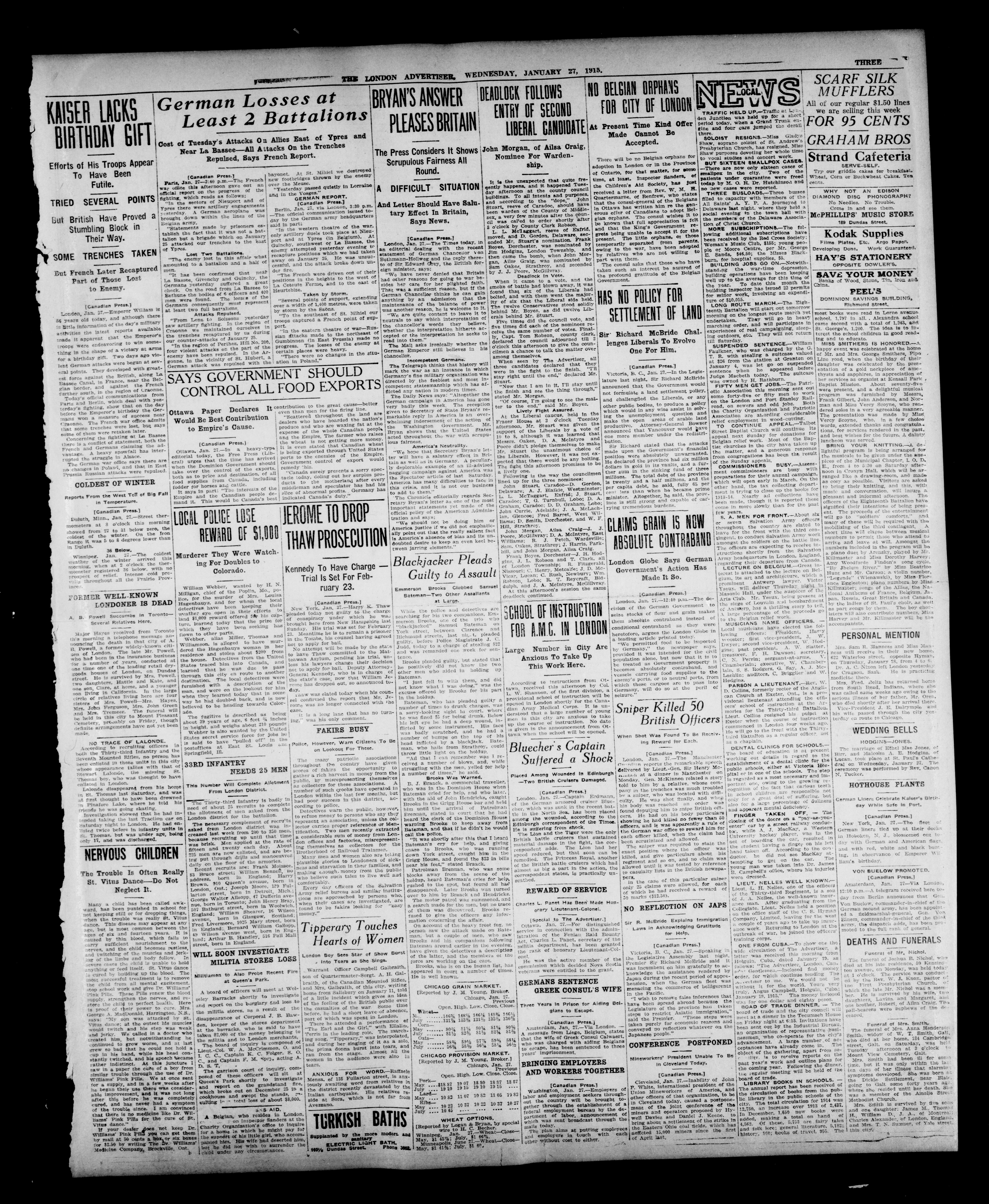 - The London Advertiser : 52nd Year, No. 22252 (January 27, 1915)