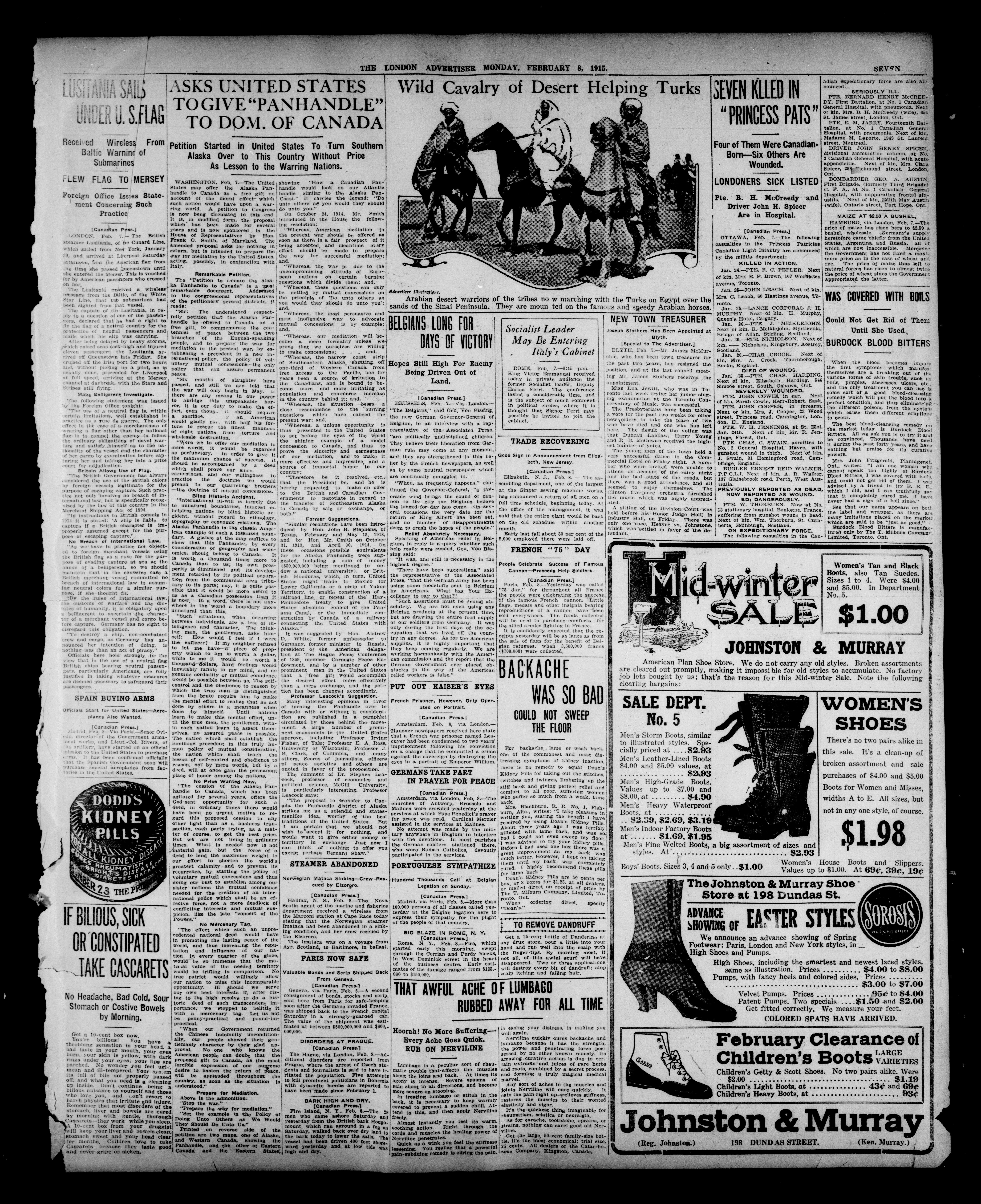 - The London Advertiser : 52nd Year, No. 22262 (February 8, 1915)