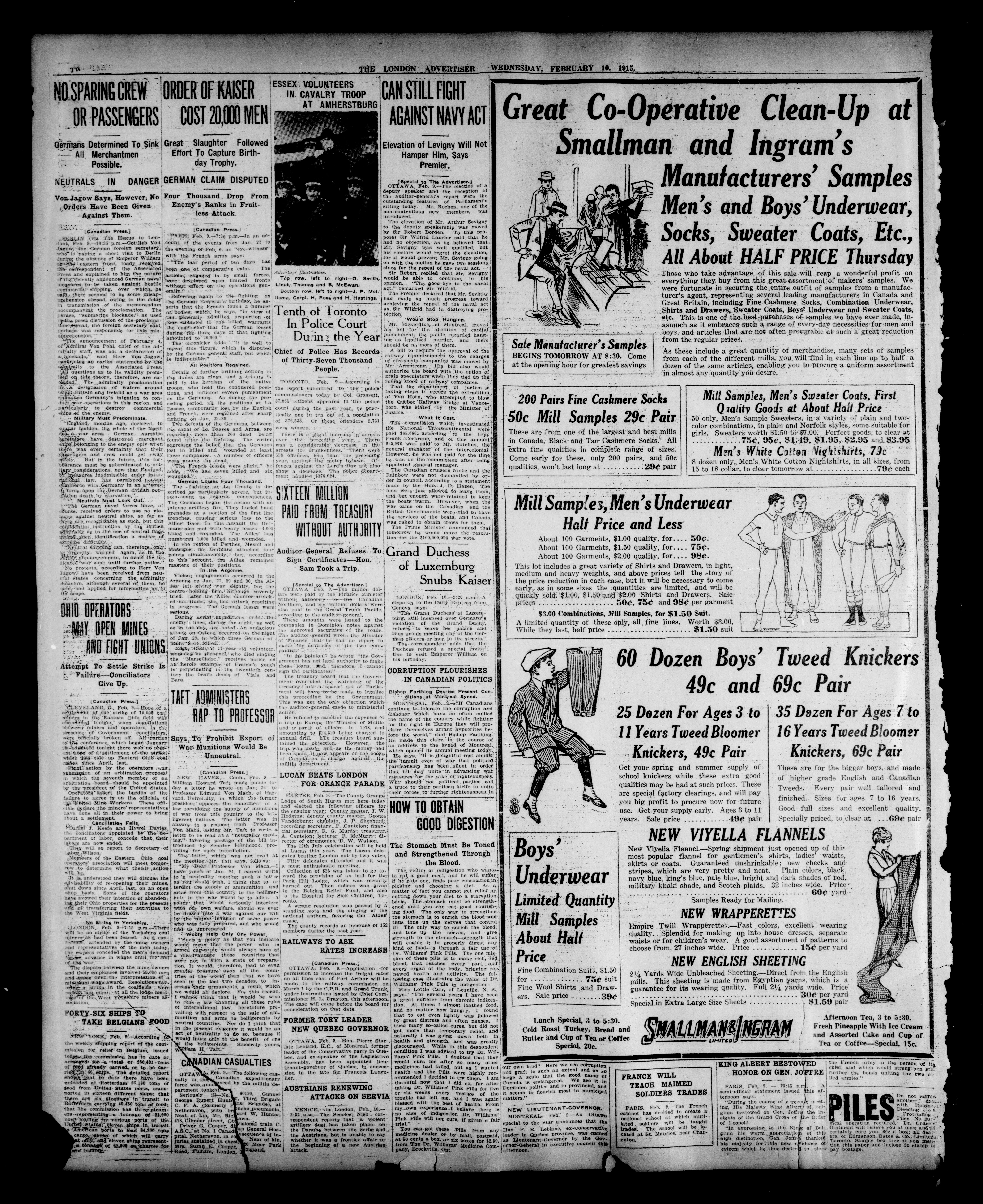 - The London Advertiser : 52nd Year, No. 22264 (February 10, 1915)