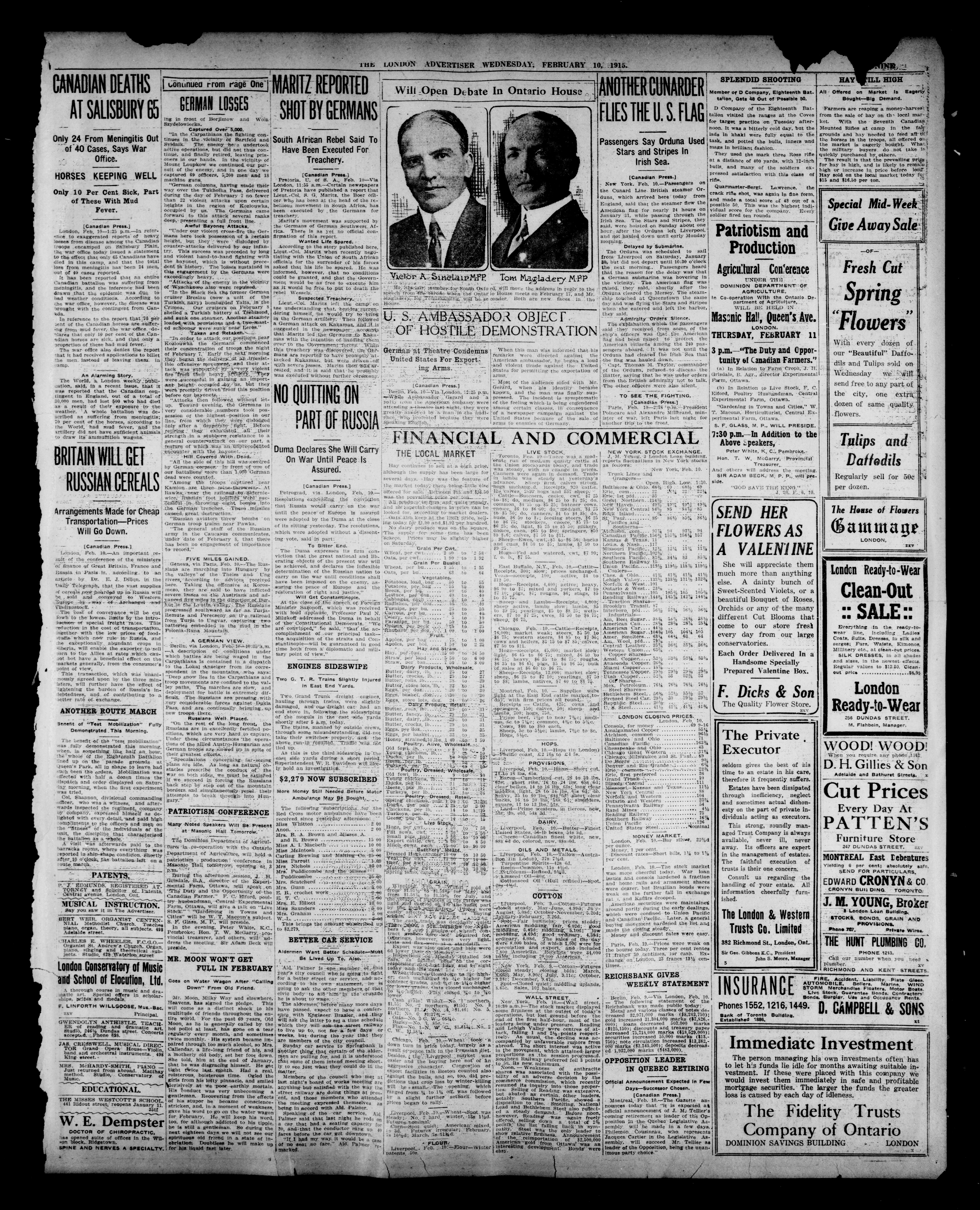 - The London Advertiser : 52nd Year, No. 22264 (February 10, 1915)