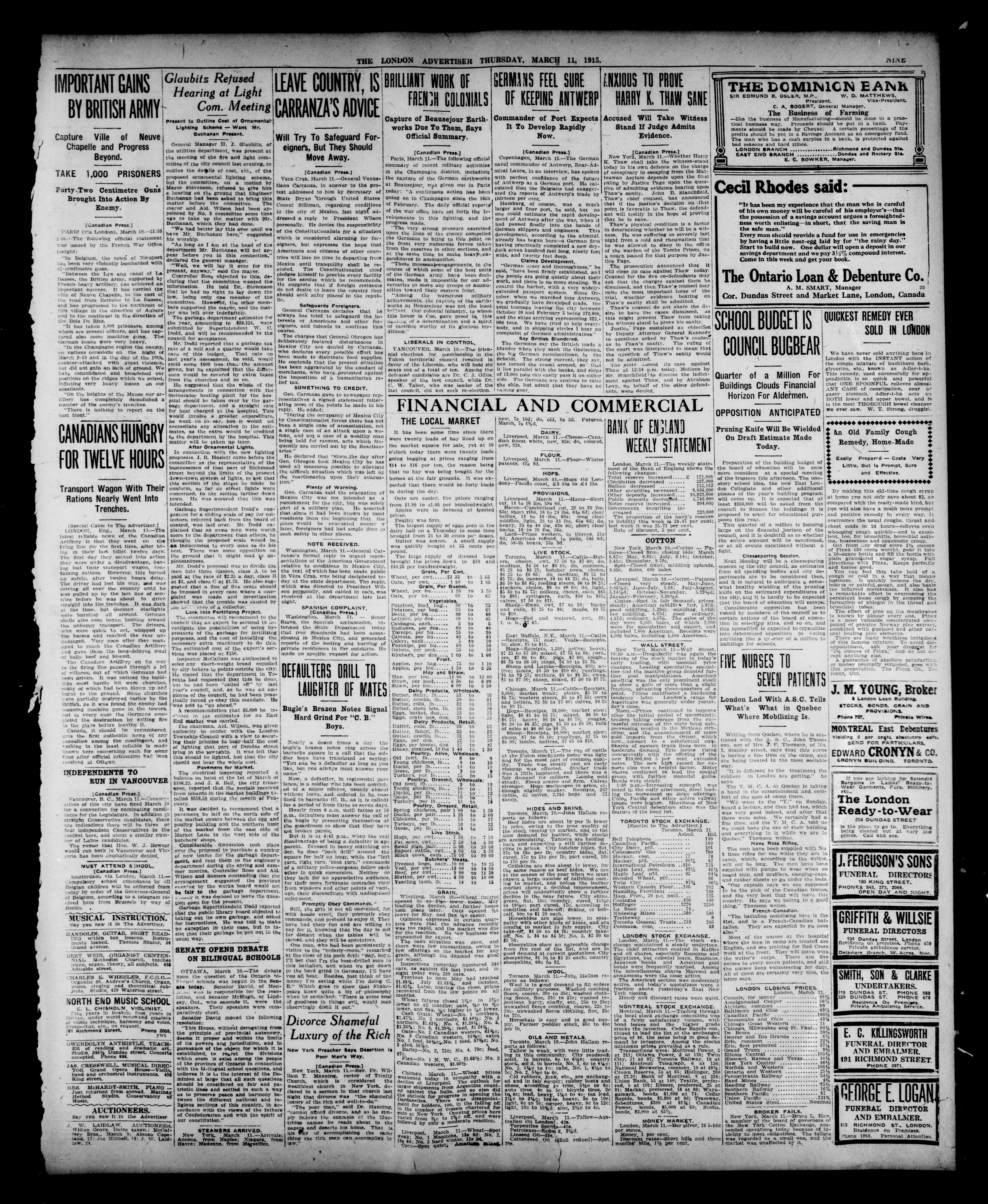 London advertiser. : The London Advertiser : 52nd Year, No. 22289 (March 11, 1915)