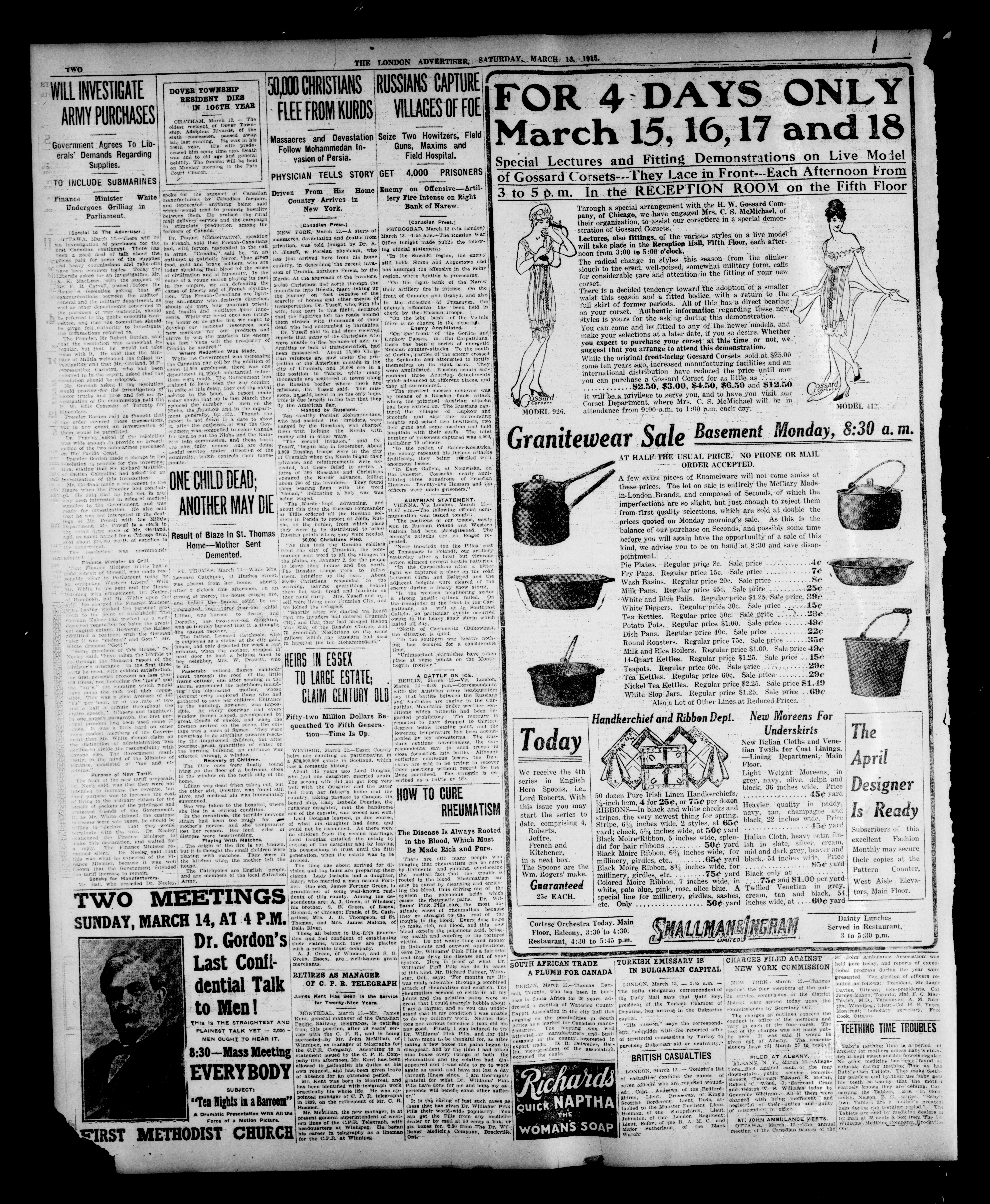 - The London Advertiser : 52nd Year, No. 22291 (March 13, 1915)