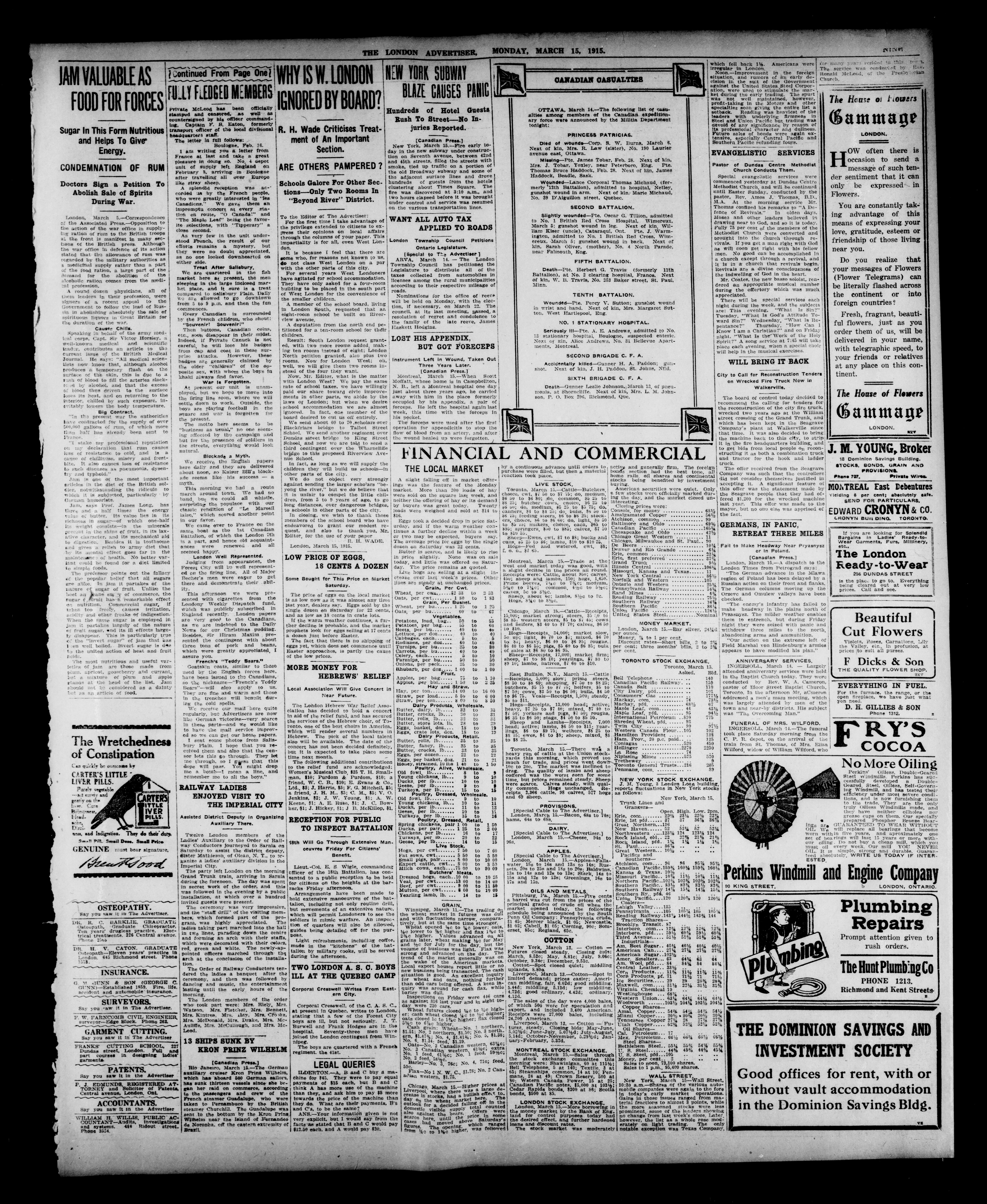 - The London Advertiser : 52nd Year, No. 22292 (March 15, 1915)