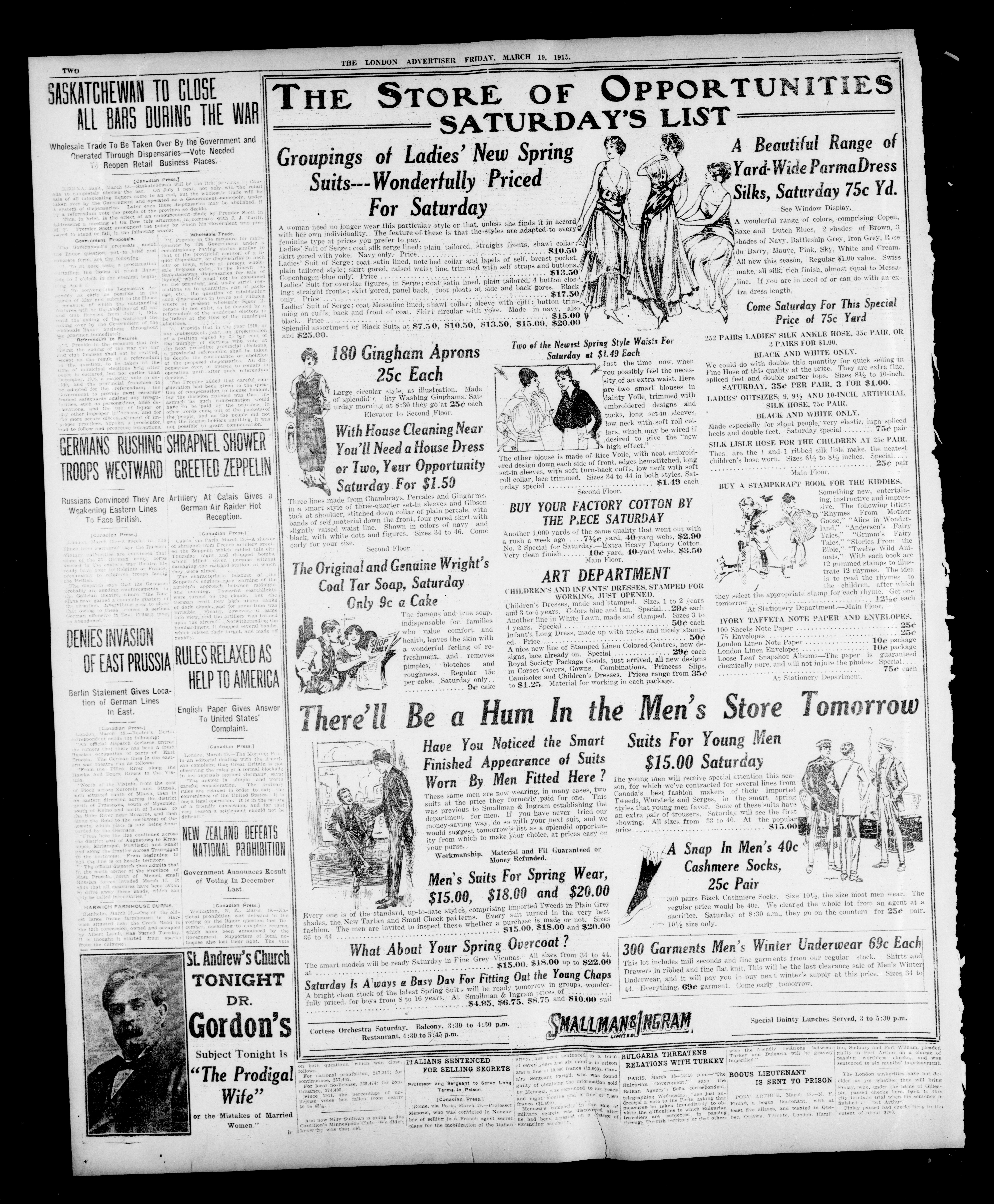 - The London Advertiser : 52nd Year, No. 22296 (March 19, 1915)
